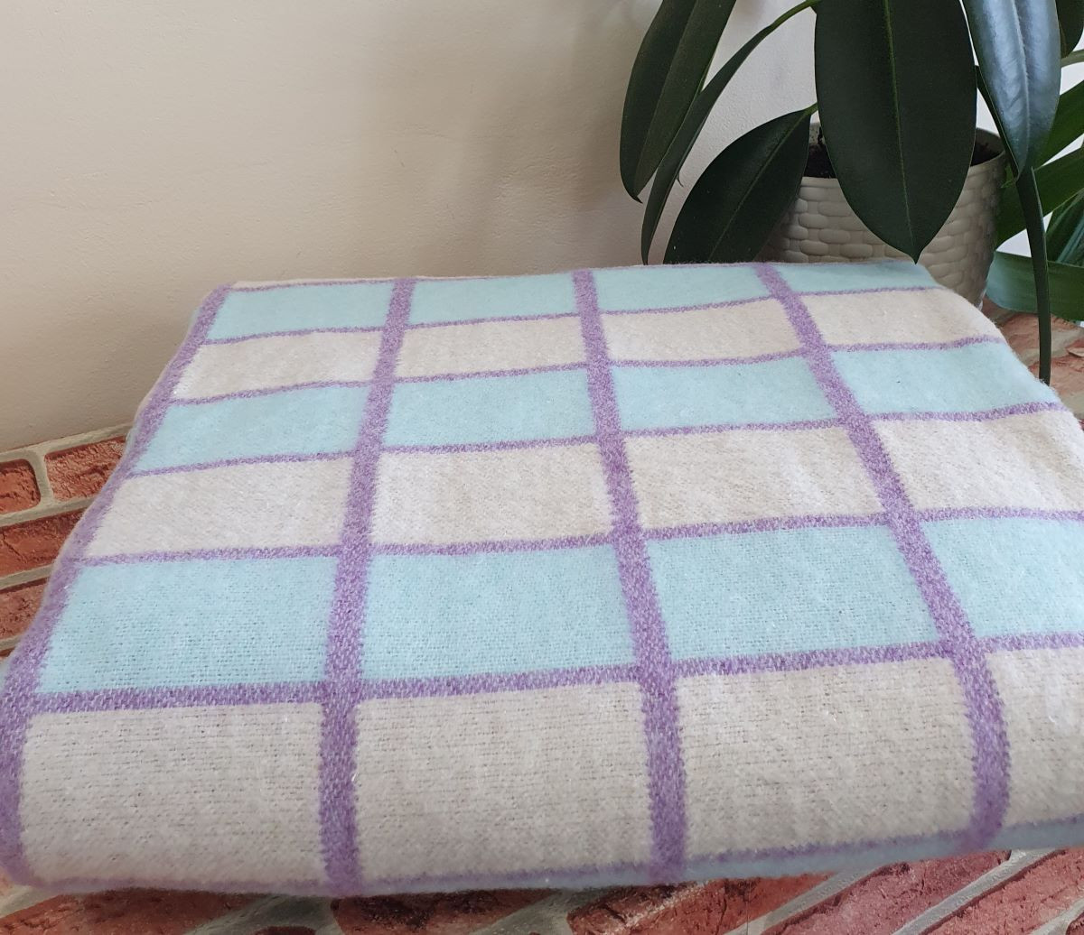 Одеяло байковое 140*205 - 80% хлопка бело-сиреневая клетка с голубым 1