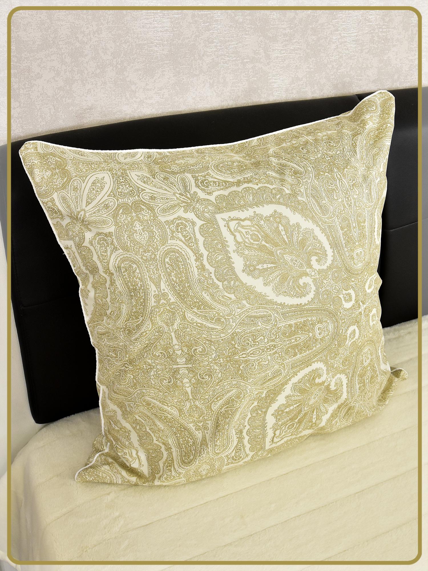 Наперник из тика пуходержащего 60х60 - На молнии Цветы бежевые с кантом