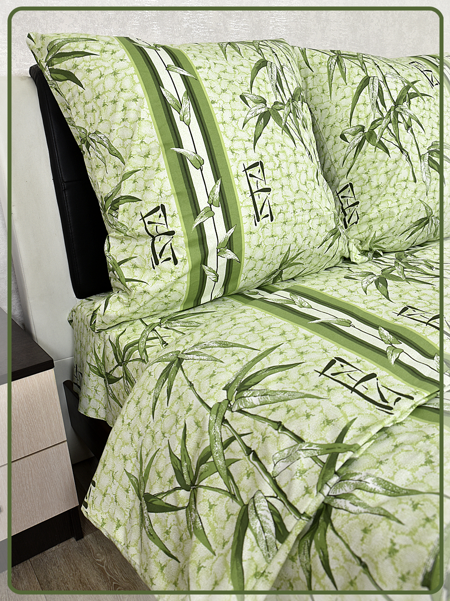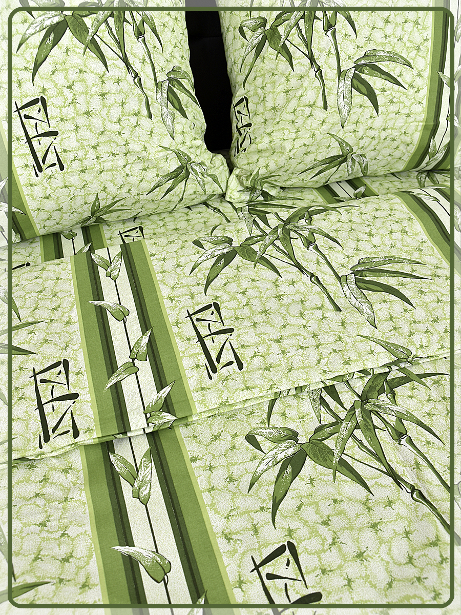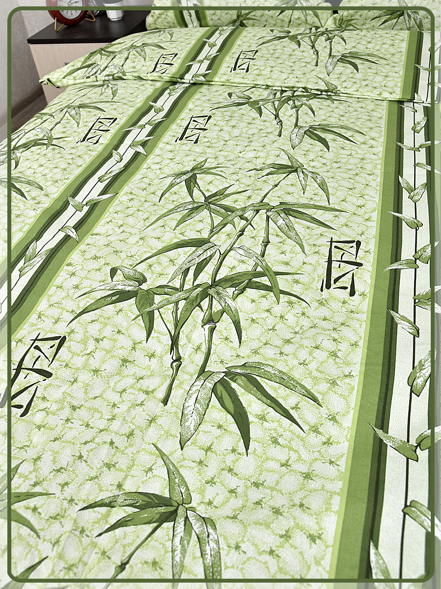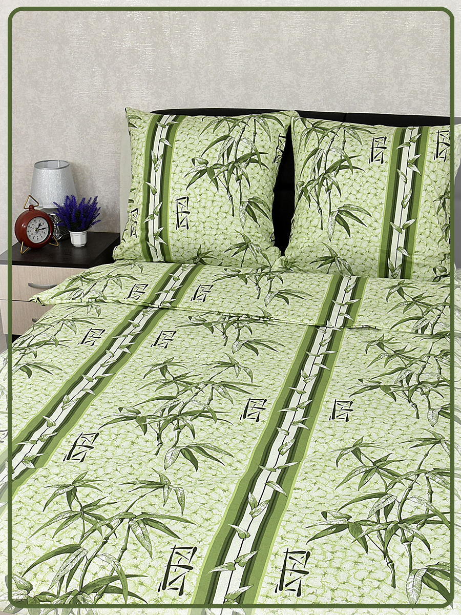 Постельное белье из Шуйской бязи 1,5 спальное - Бамбук зеленый 5758-2