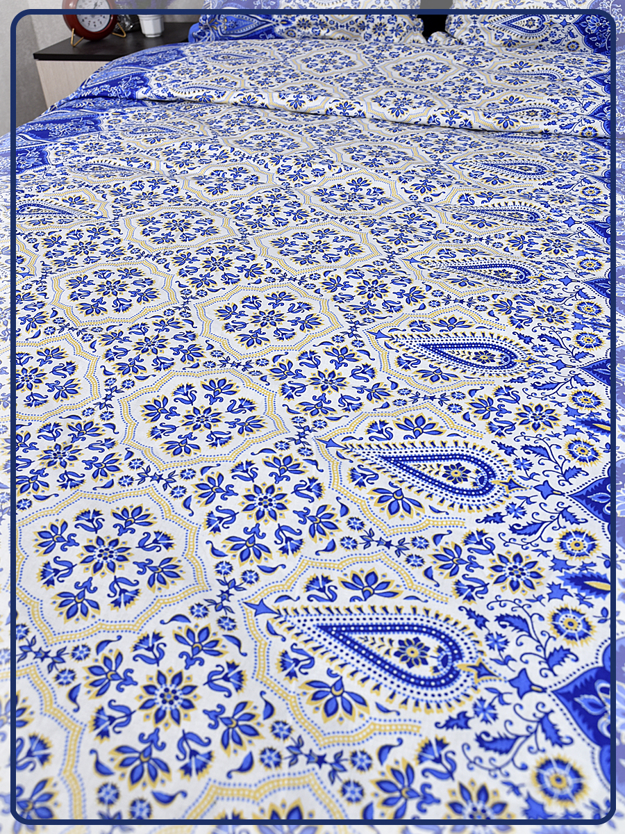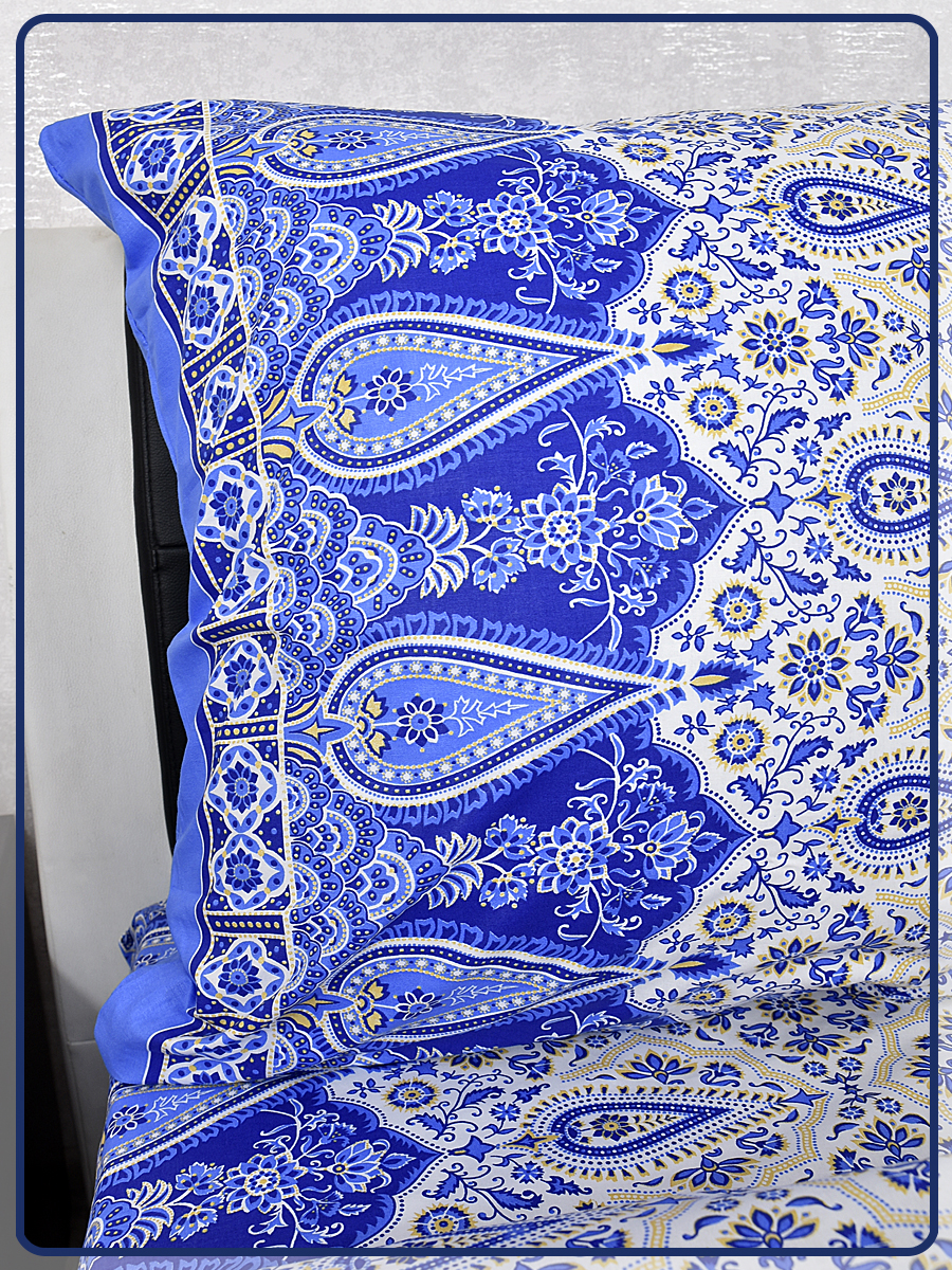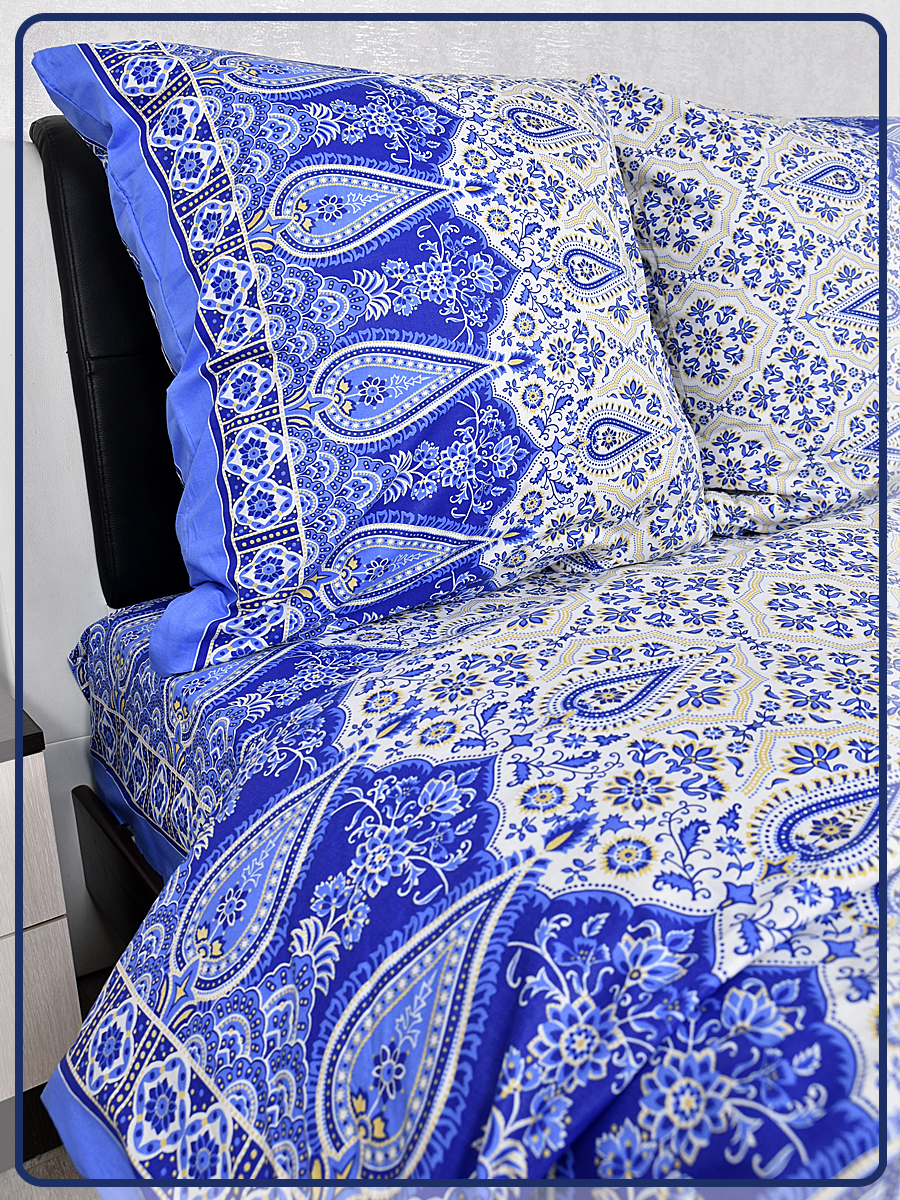 Постельное белье из Шуйской бязи 1,5 спальное - Огурцы синие 6229-1