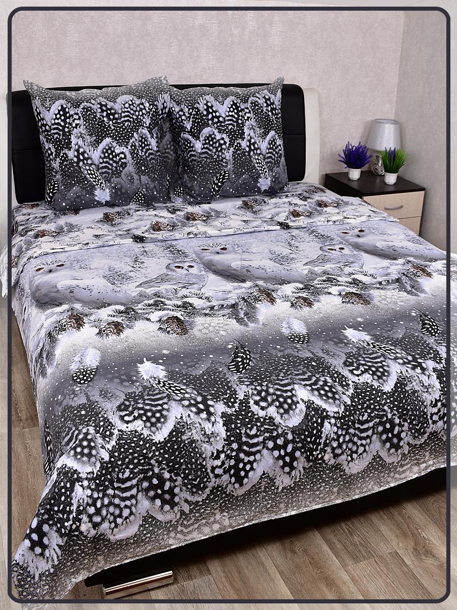 Постельное белье из Шуйской бязи Евро-макси - Совы 8267-1