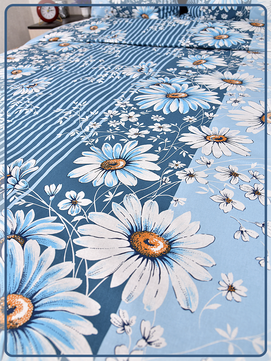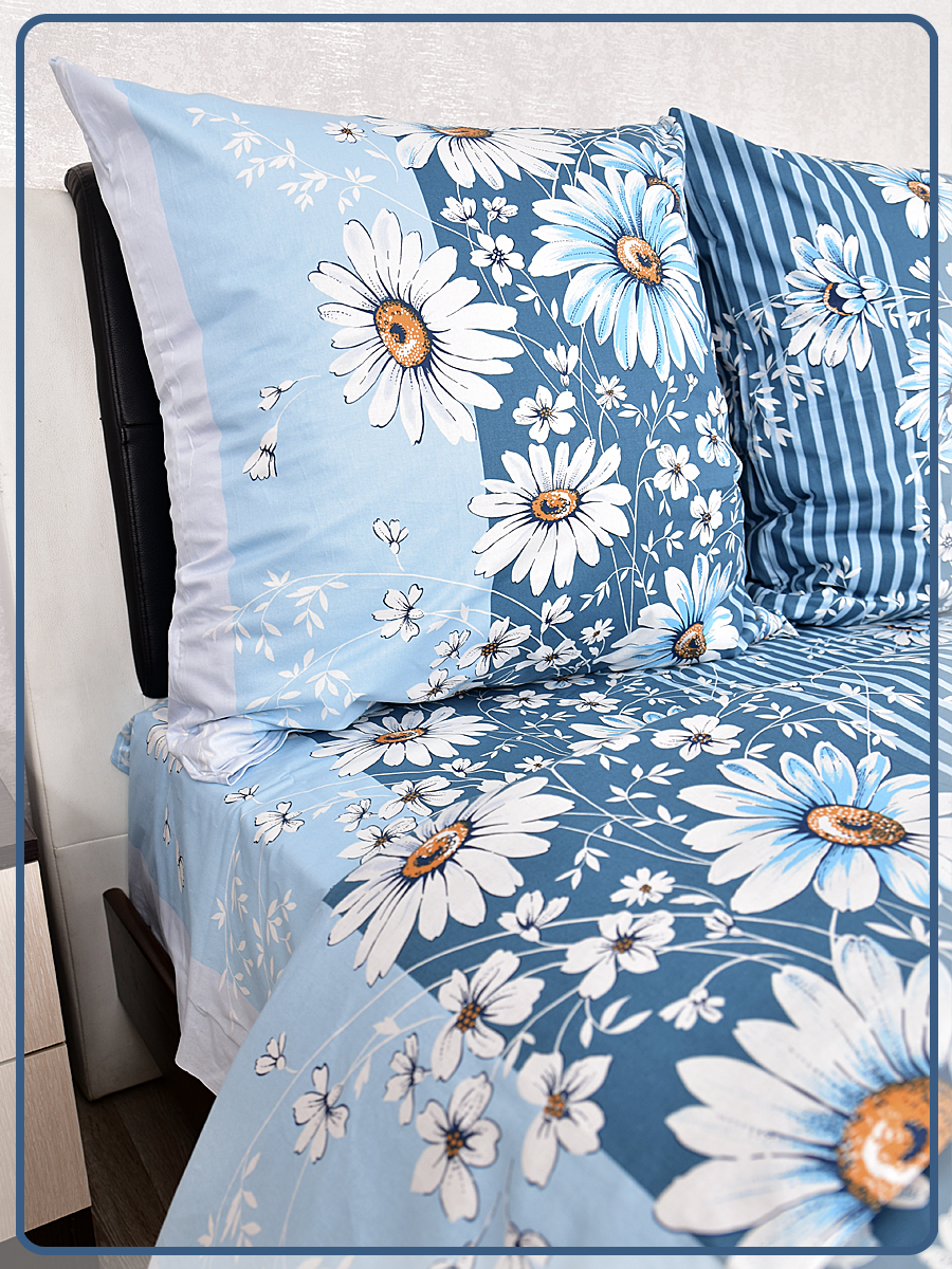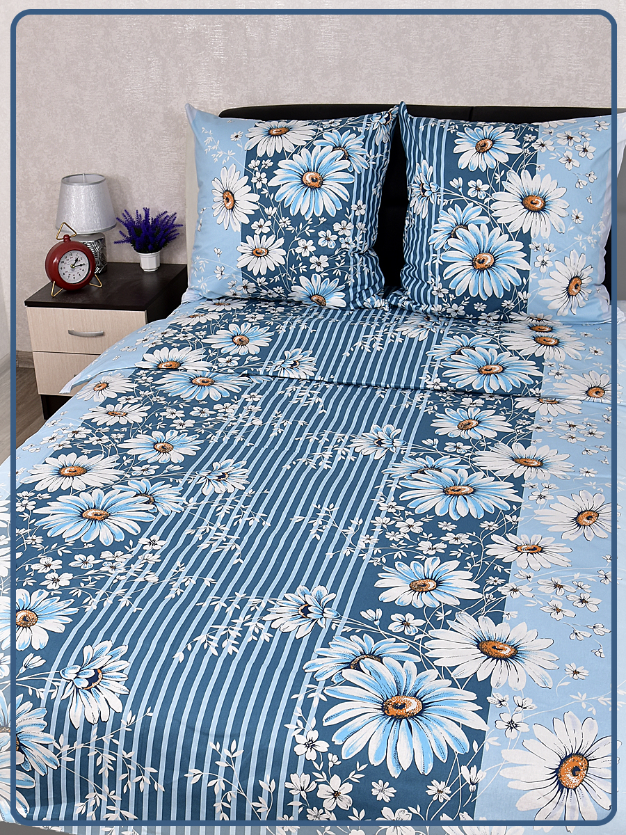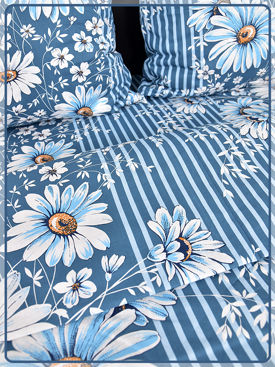 Постельное белье из Шуйской бязи 1,5 спальное - Лазурные ромашки 21661-1