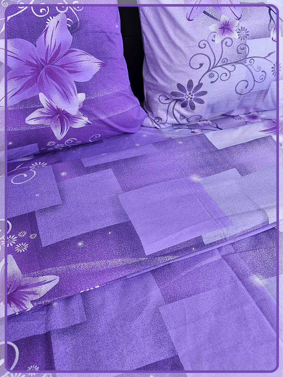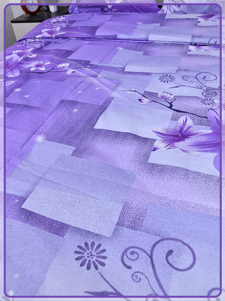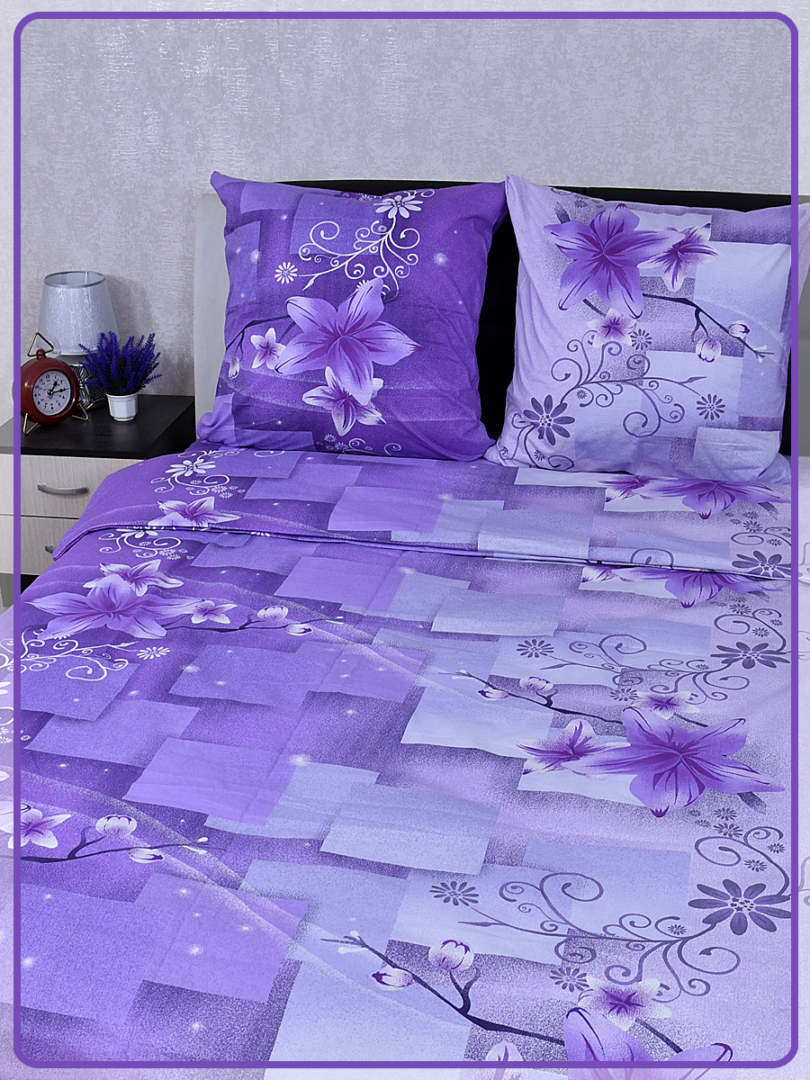 Постельное белье из Шуйской бязи 1,5 спальное - Лилия фиолетовый 8578-1