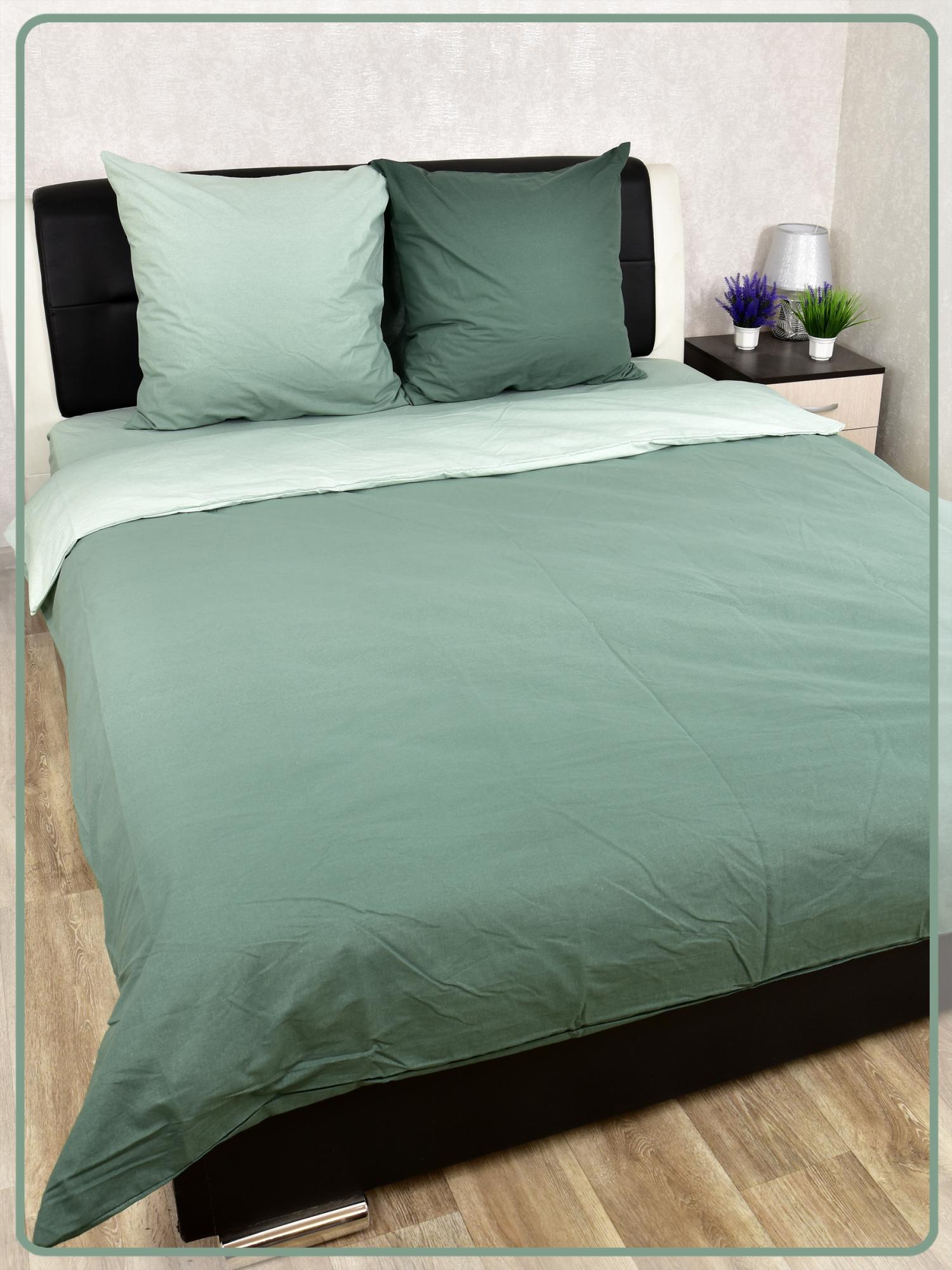 Постельное белье из Шуйской бязи 2 спальное с евро простыней - Однотонный зеленый 21014-5