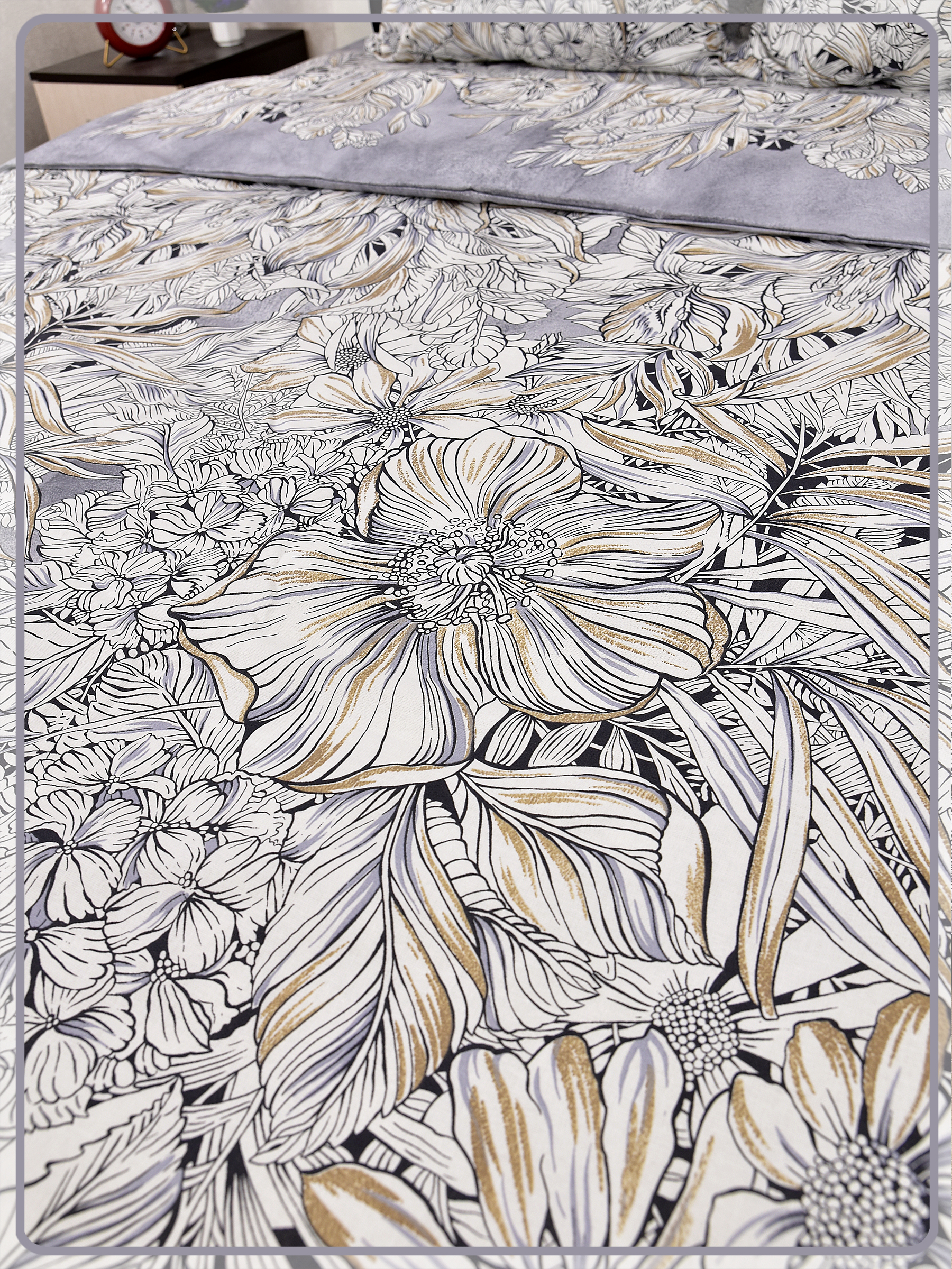 Постельное белье из Шуйской бязи 2 спальное с евро простыней - Загадочный сад 21919-1