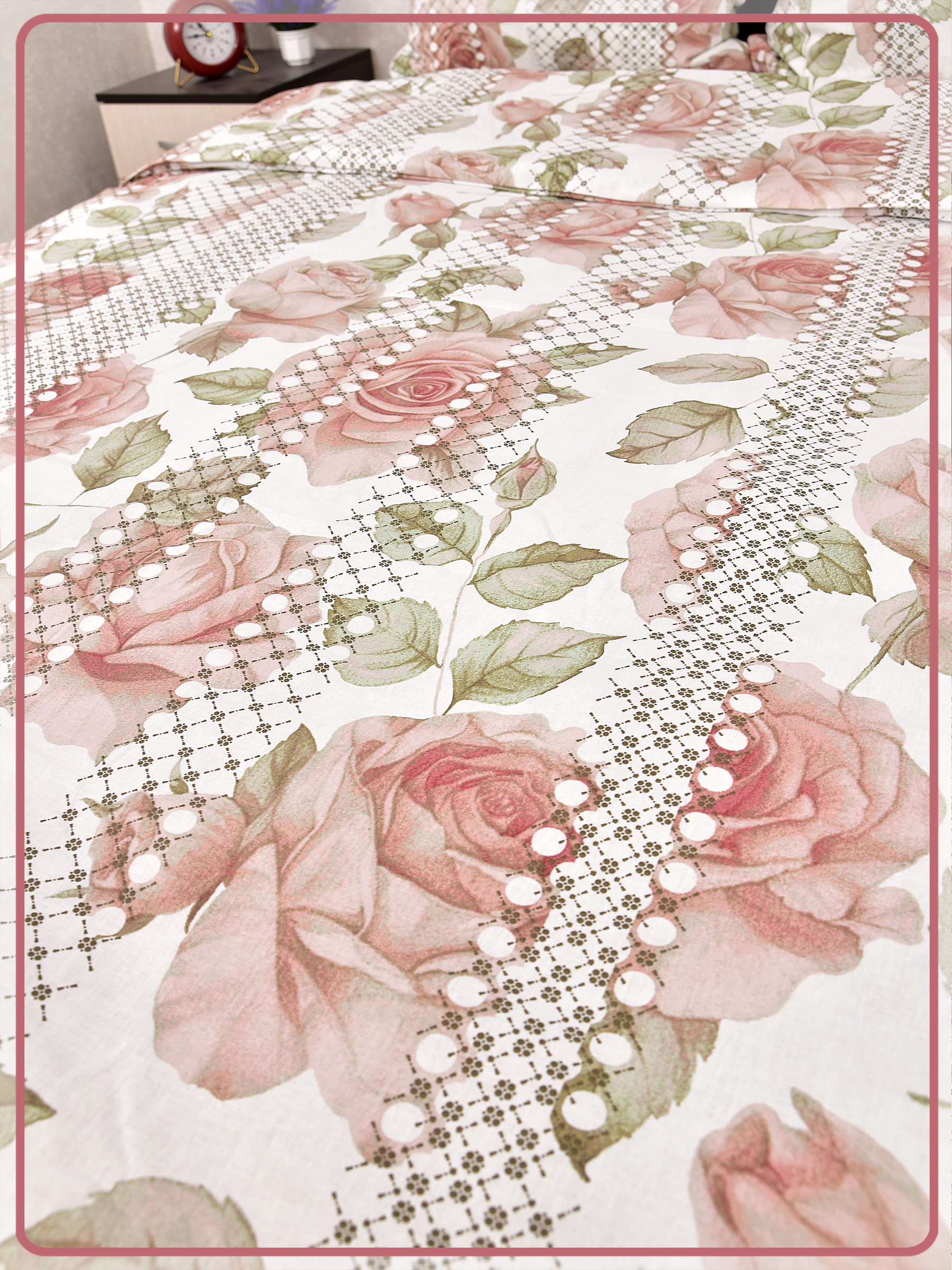 Постельное белье из Шуйской бязи 2 спальное - Чайные розы 21954-1