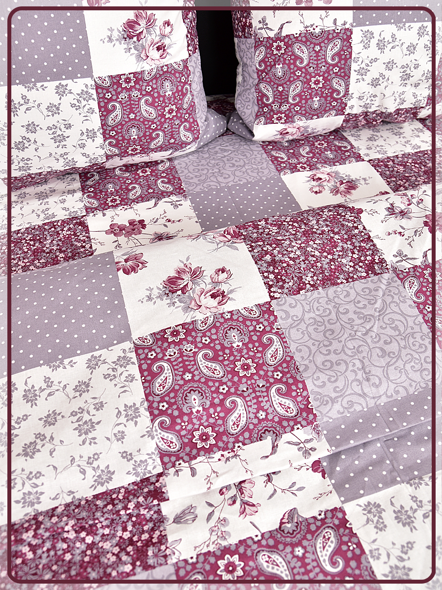 Постельное белье из Шуйской бязи 1,5 спальное - Пэчворк бордовый 9909-1