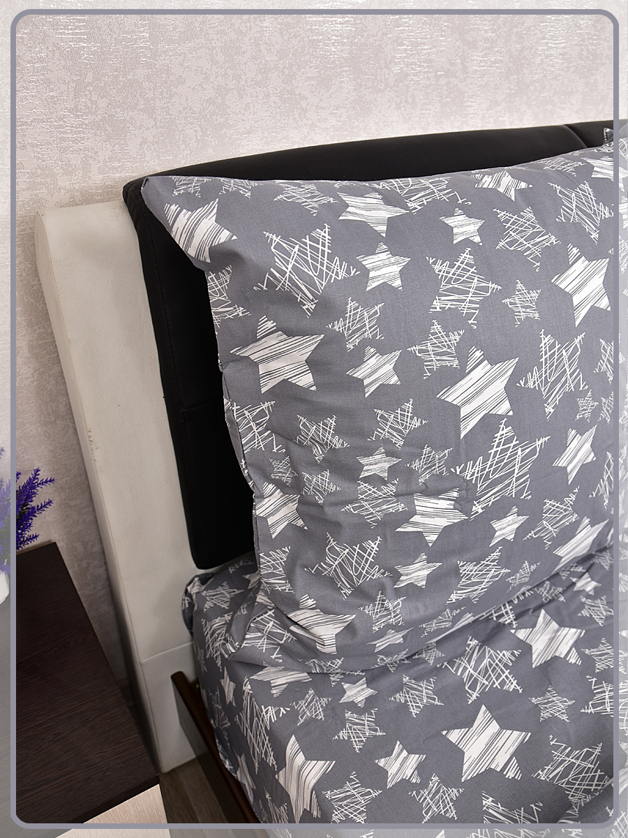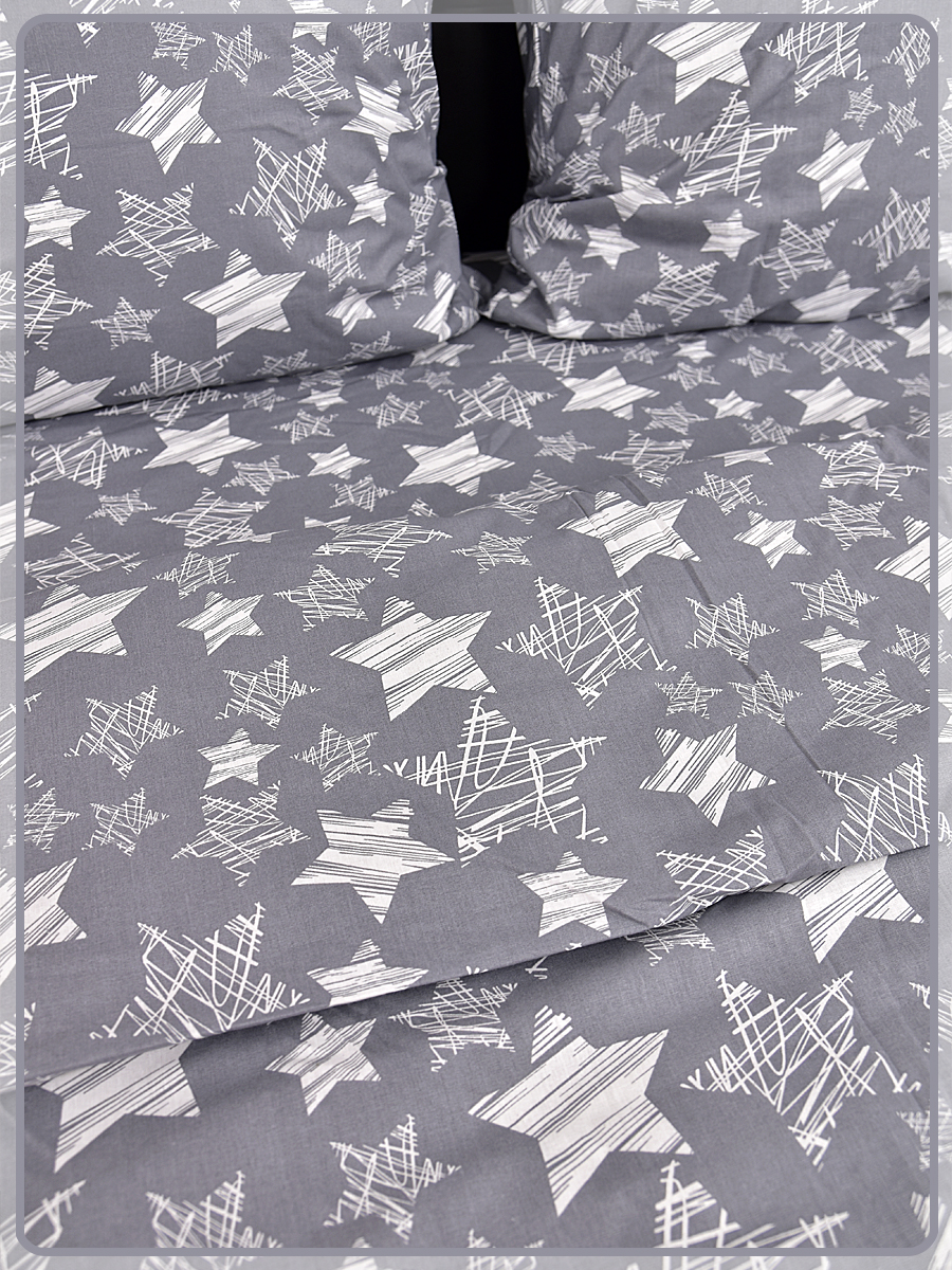 Постельное белье из Шуйской бязи 2 спальное - Звезды на сером 9050-1