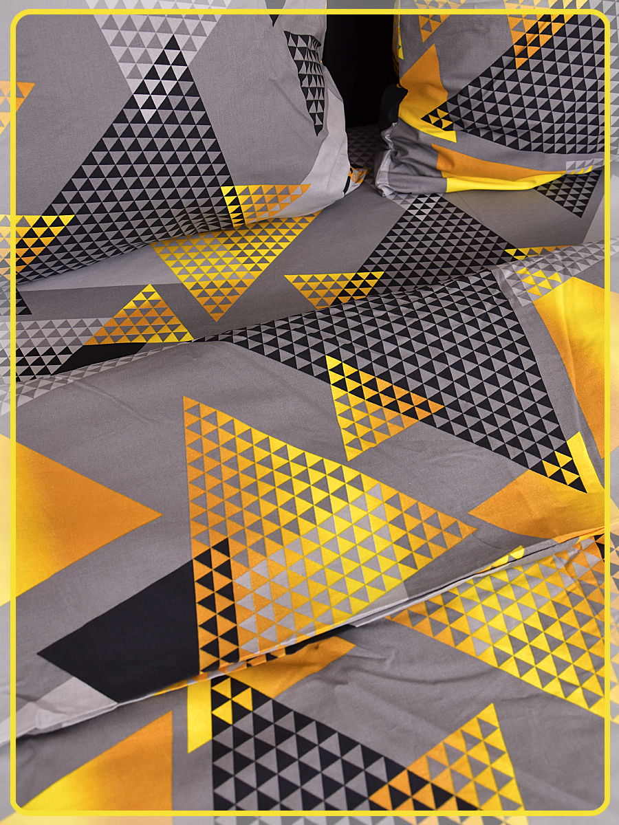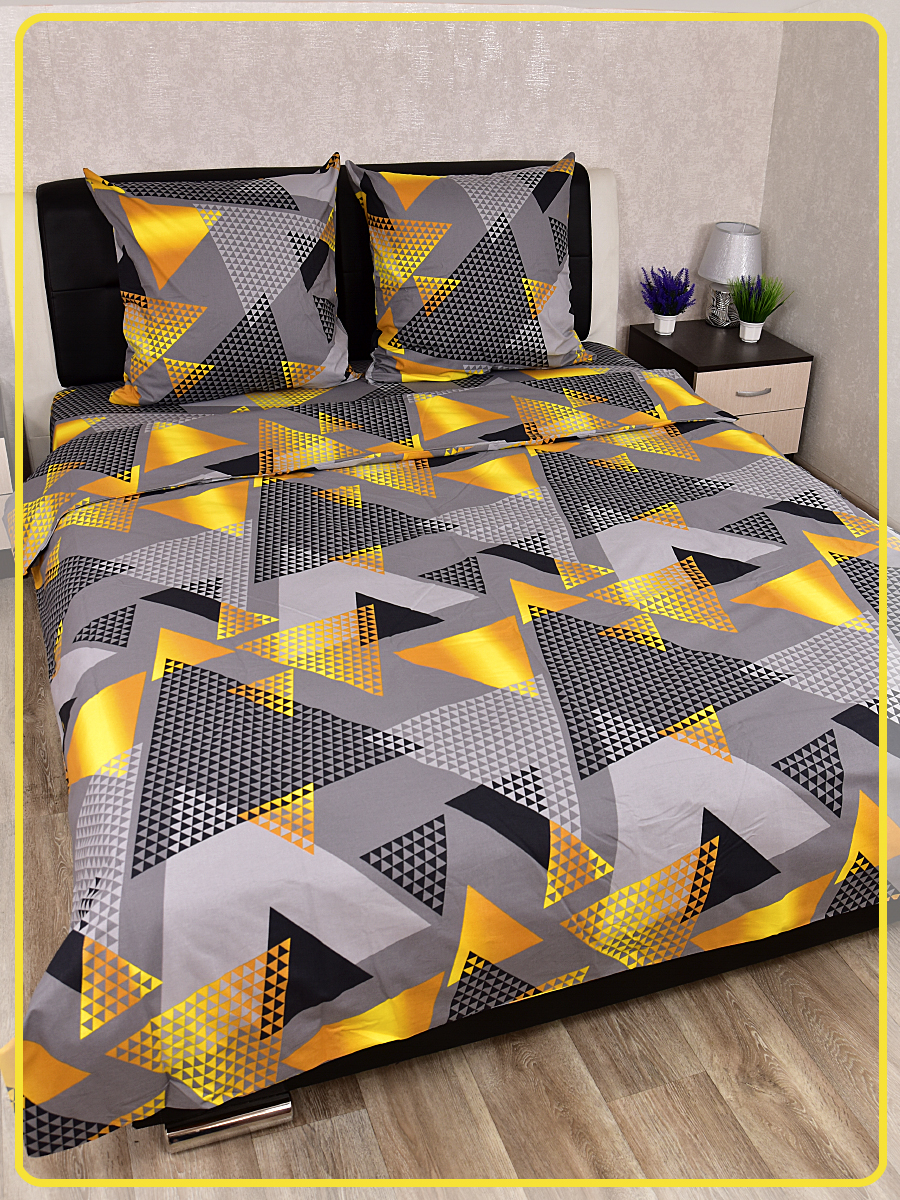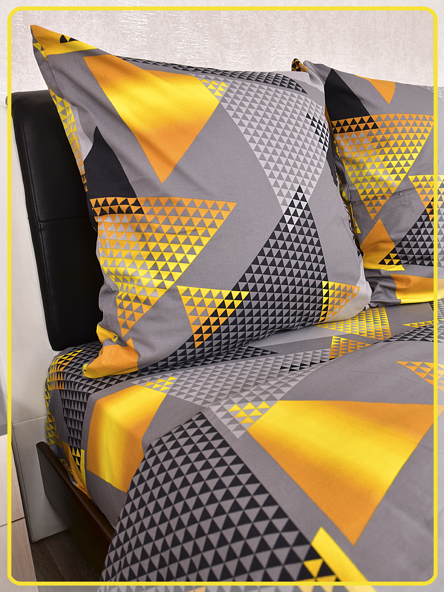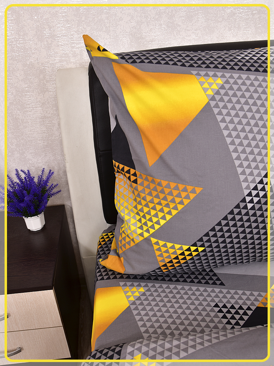 Постельное белье из Шуйской бязи 2 спальное с евро простыней - Треугольник желтый 20804-1