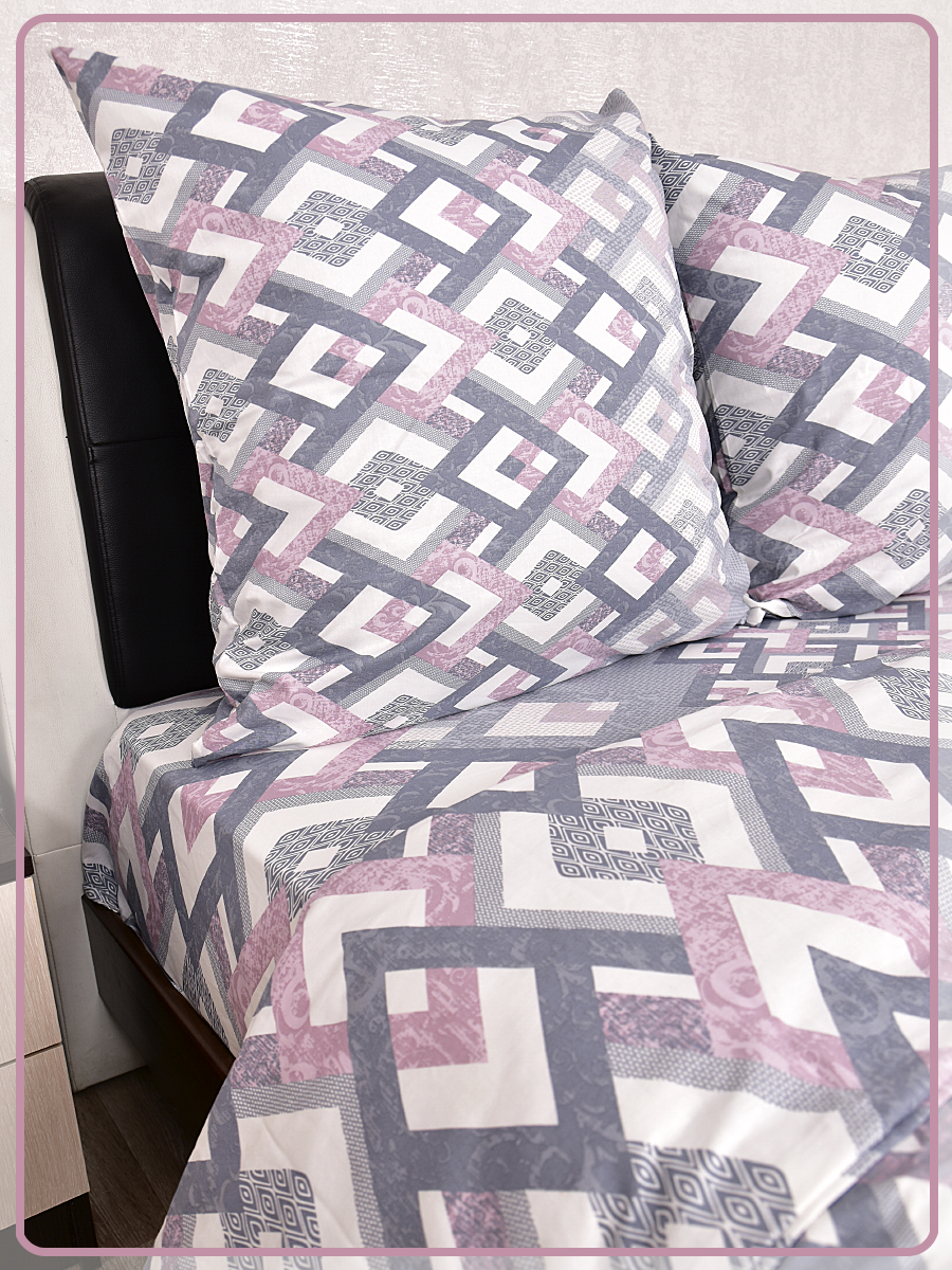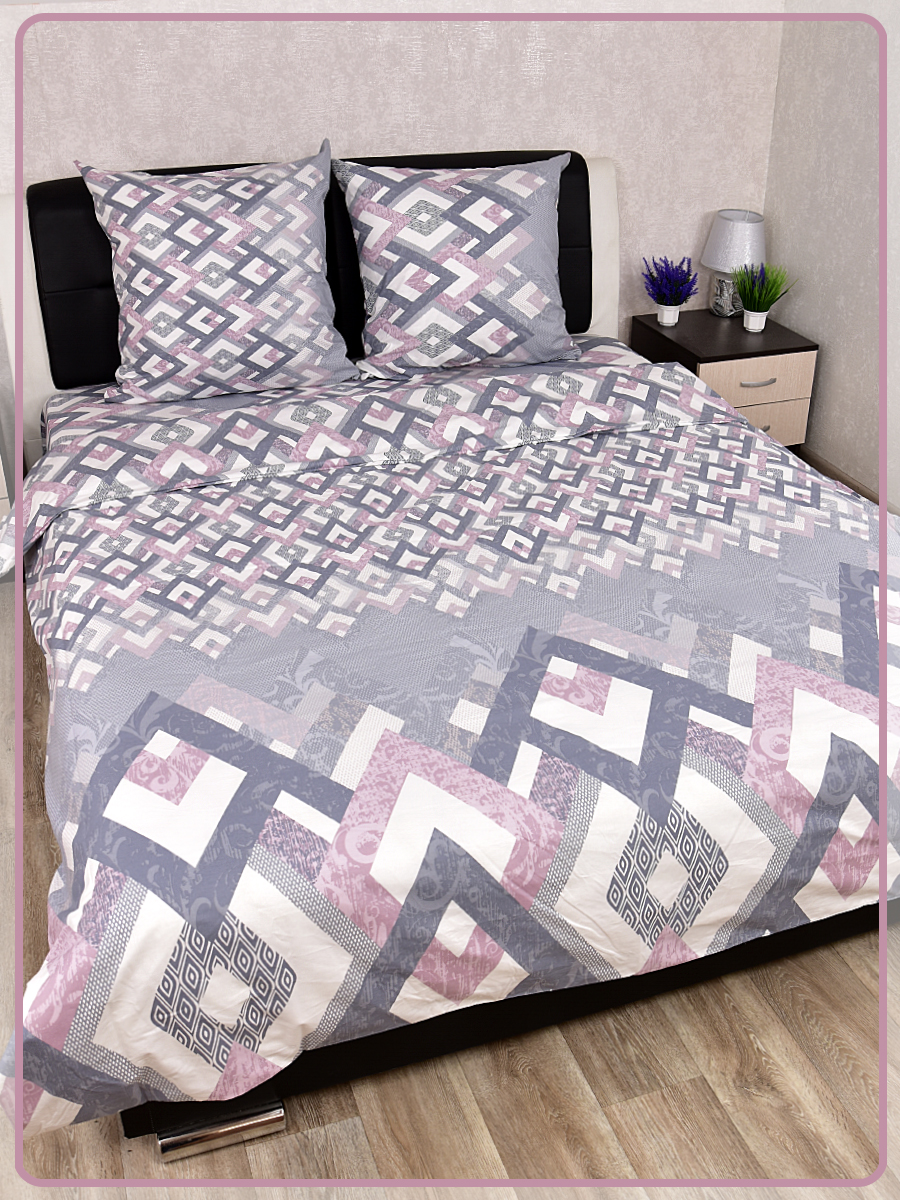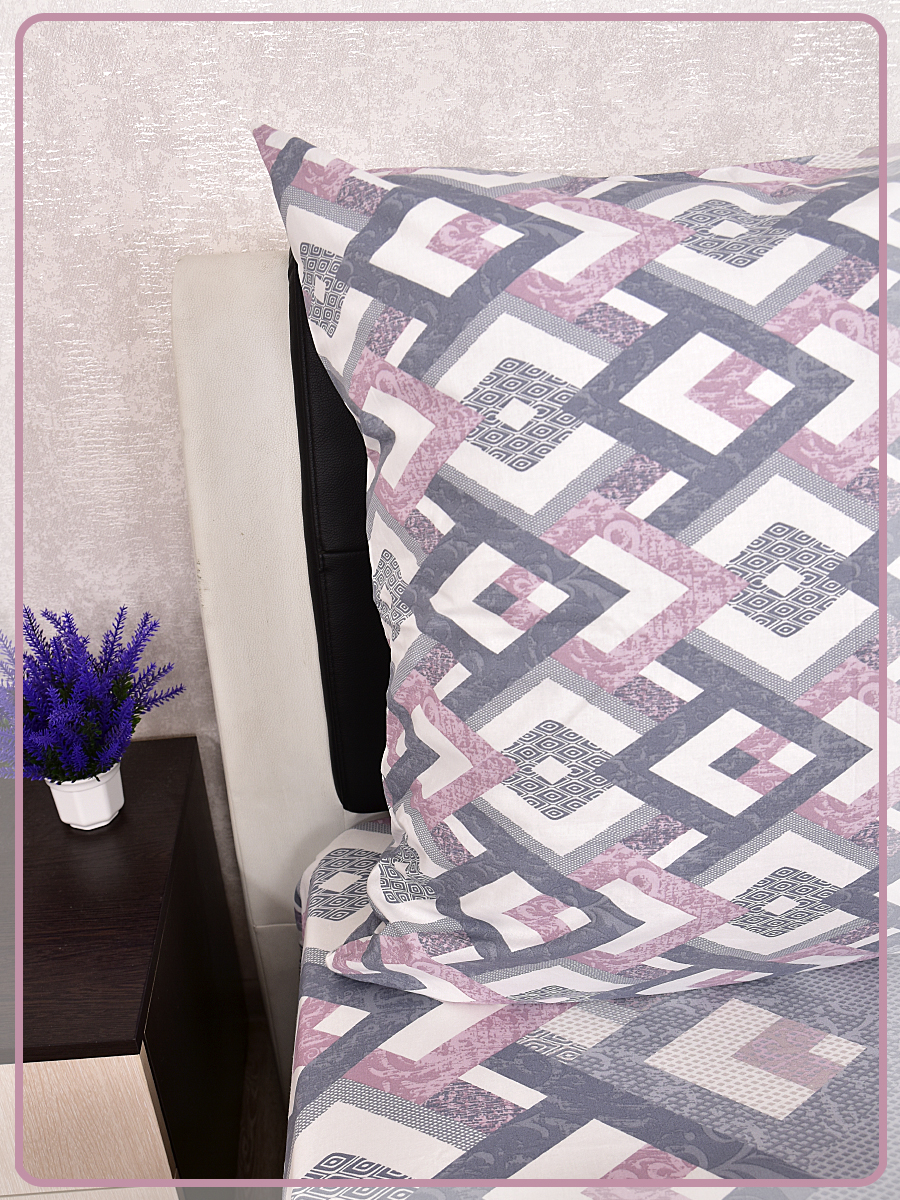 Постельное белье из Шуйской бязи 2 спальное б/ш - Ромб серо-розовый 21579-1