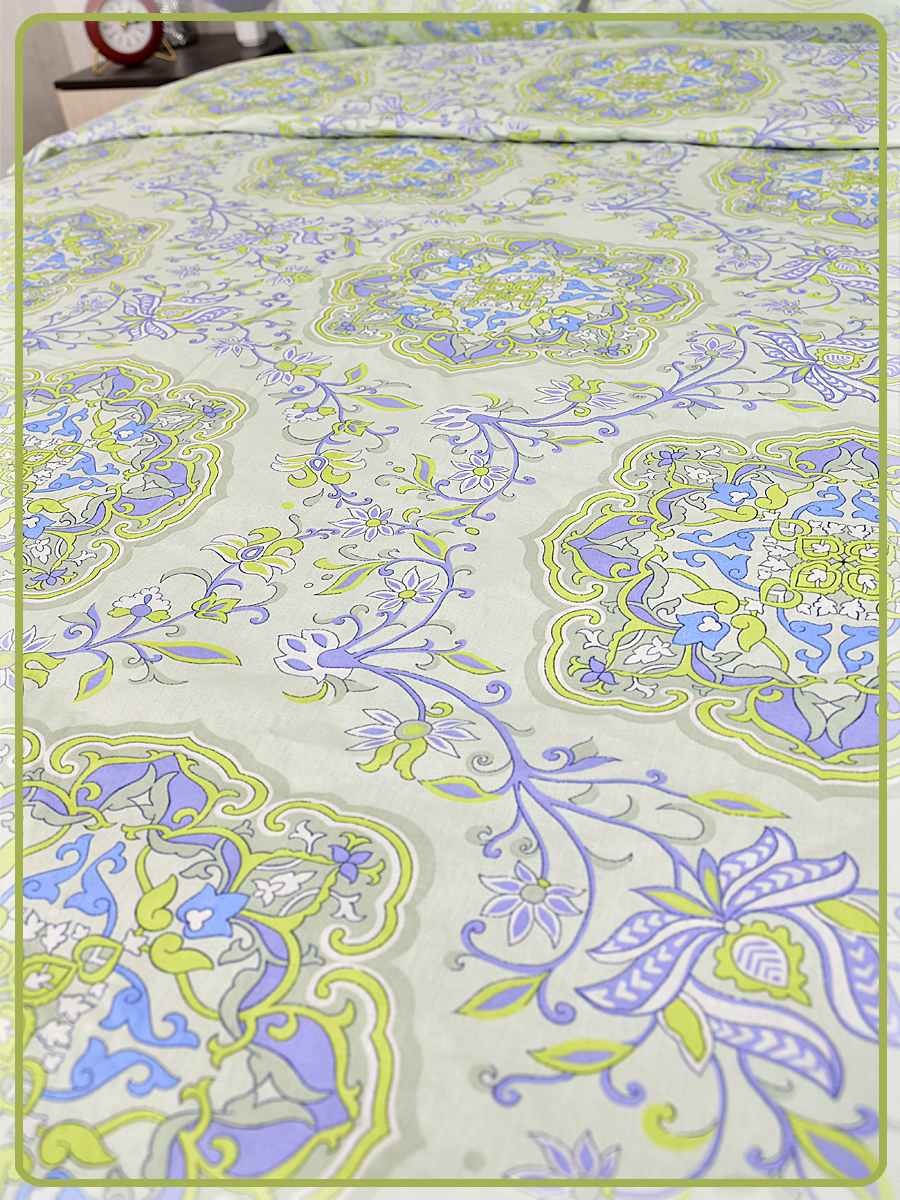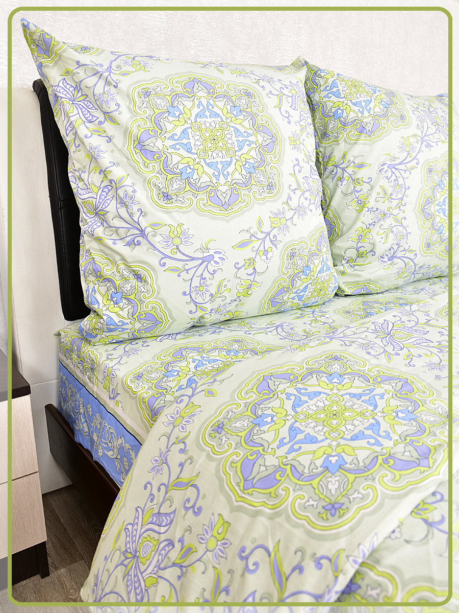 Постельное белье из Шуйской бязи 2 спальное - Узоры зеленые 8128-2