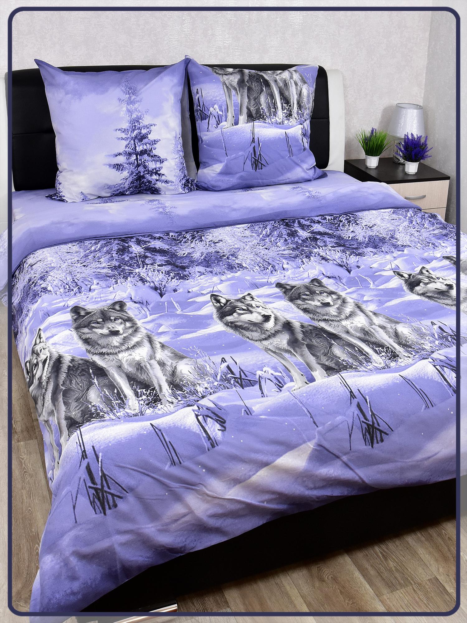 Постельное белье из Шуйской бязи 2 спальное с евро простыней - Волк 22087-1
