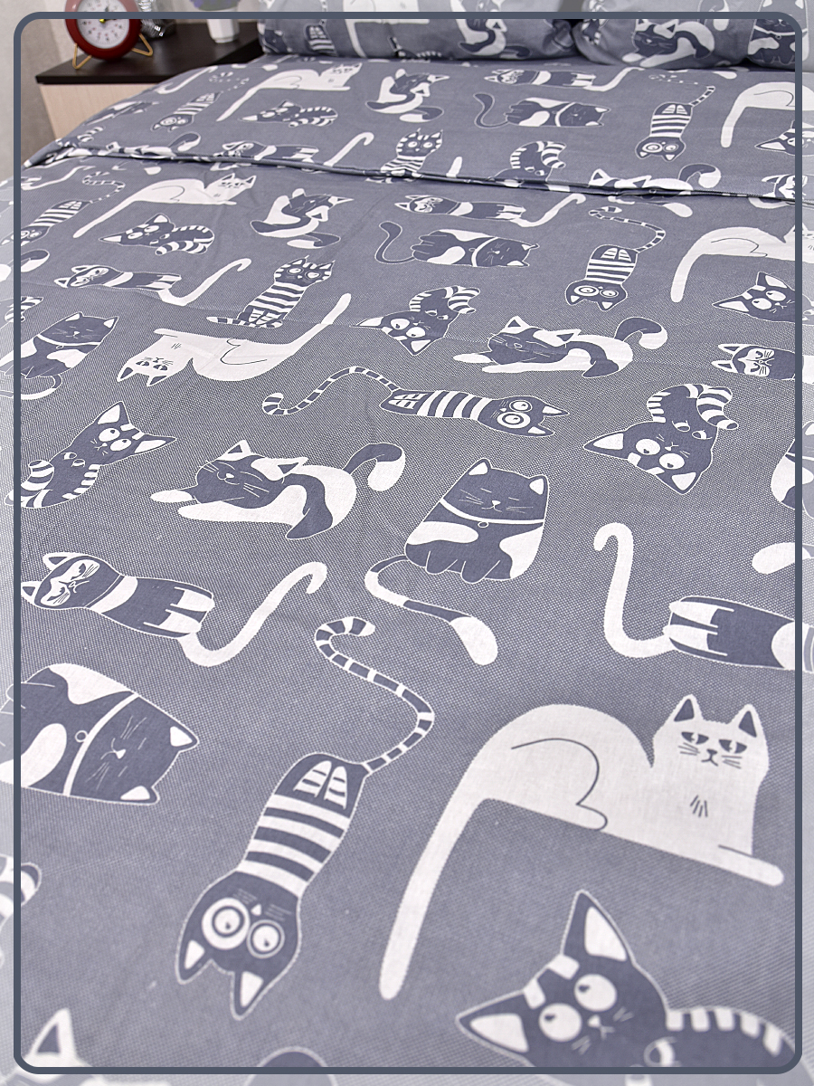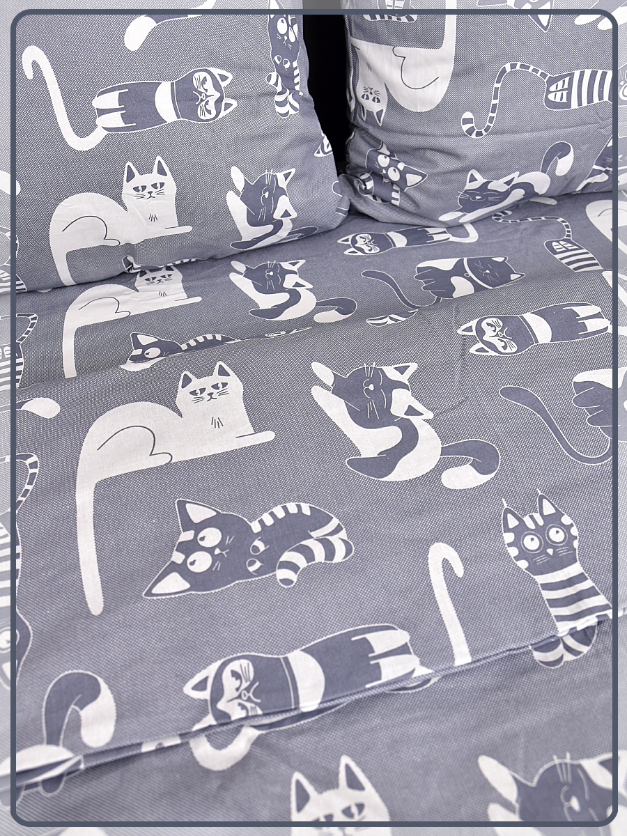 Постельное белье из бязи 1,5 спальное - Кошкин дом вид 9/16 темно-серый