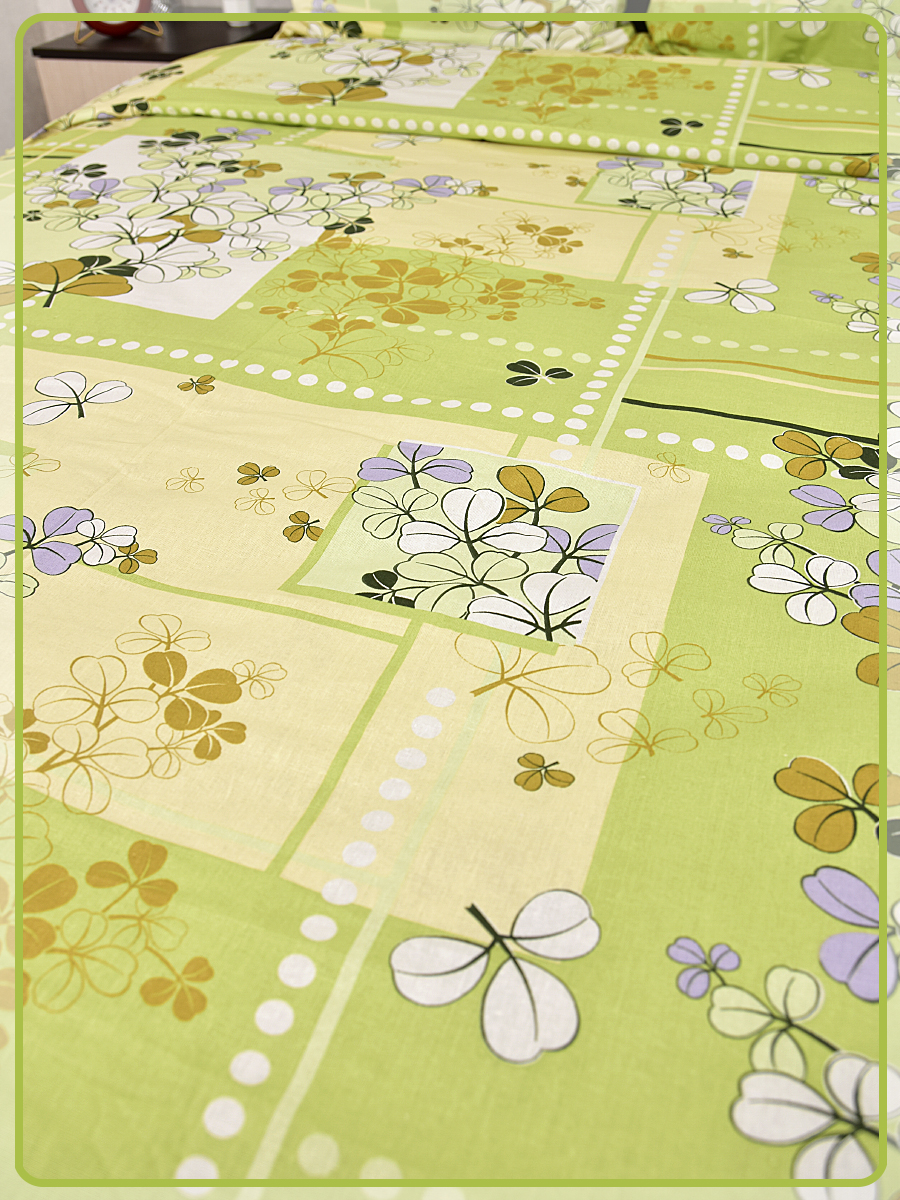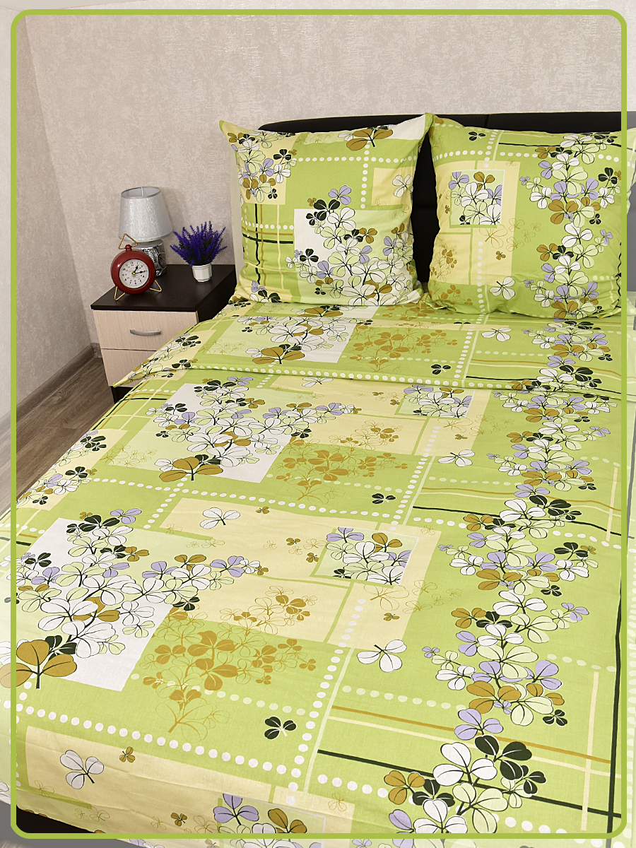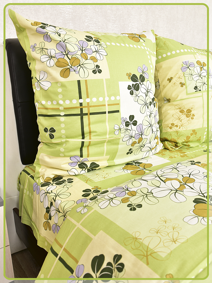 Постельное белье из Шуйской бязи 1,5 спальное - Листики зеленые 8947-1
