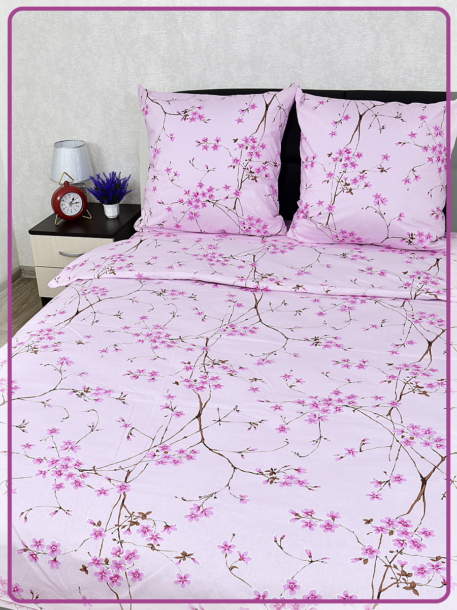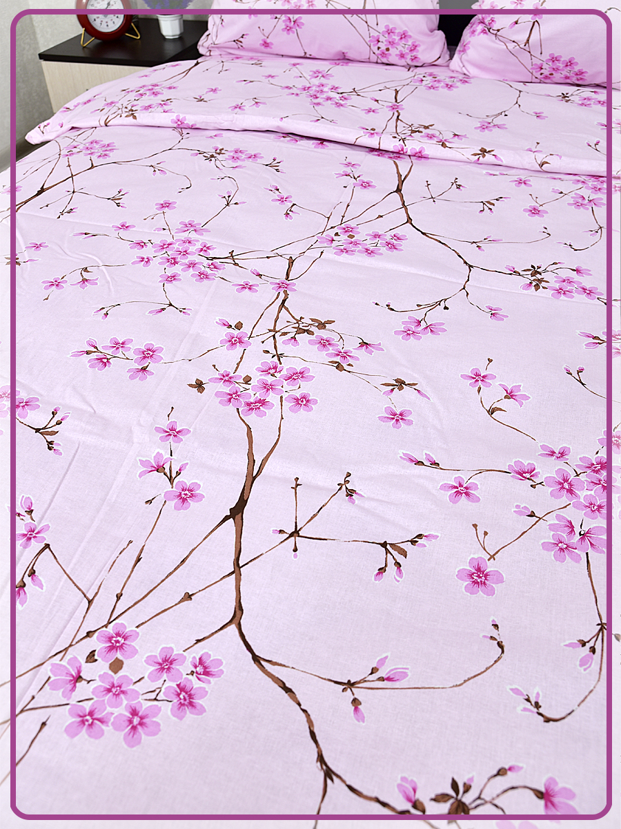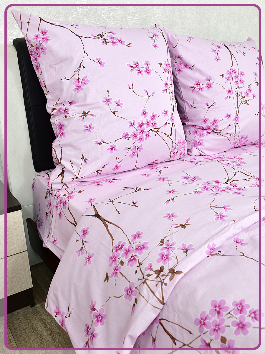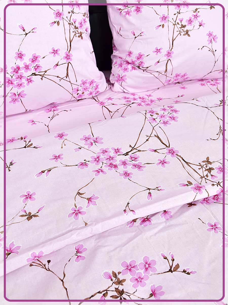 Постельное белье из Шуйской бязи 1,5 спальное - Сакура розовая 6698-2