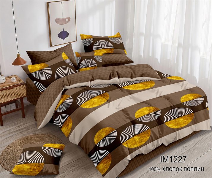 Комплект постельного белья плотностью 115 гр/м2 из поплина. Верх пододеяльника простеган ультростежкой. Пододеяльник и наволочки на молнии. Рюши и ушки (французский кант) отсутствуют.