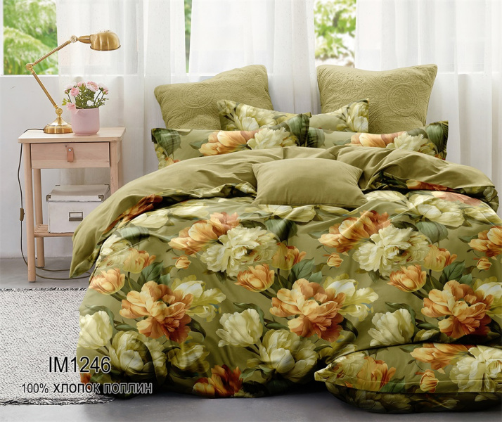Комплект постельного белья плотностью 115 гр/м2 из поплина. Верх пододеяльника простеган ультростежкой. Пододеяльник и наволочки на молнии. Рюши и ушки (французский кант) отсутствуют.