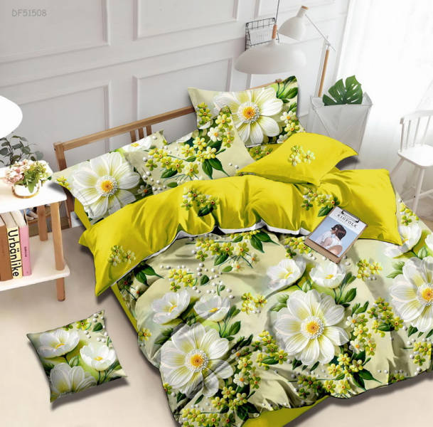 Комплект постельного белья плотностью 115 гр/м2 из поплина. Рюши и ушки (французский кант) отсутствуют.