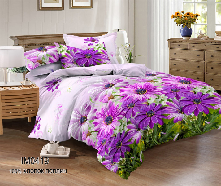 Комплект постельного белья плотностью 115 гр/м2 из поплина. Рюши и ушки (французский кант) отсутствуют.