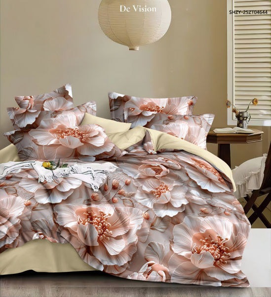 Комплект постельного белья плотностью 115 гр/м2 из поплина. Рюши и ушки (французский кант) отсутствуют.