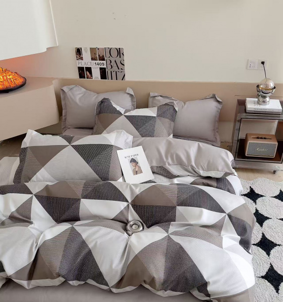 Комплект постельного белья плотностью 115 гр/м2 из поплина. Рюши и ушки (французский кант) отсутствуют.