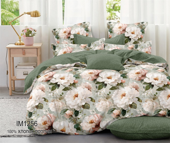 Комплект постельного белья плотностью 115 гр/м2 из поплина. Рюши и ушки (французский кант) отсутствуют.