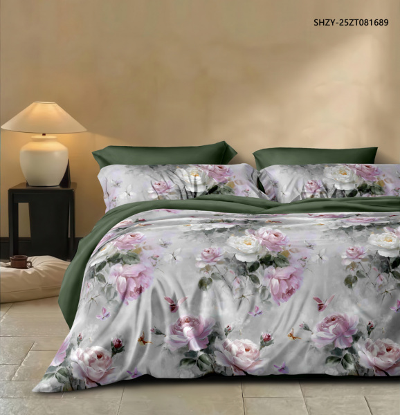 Комплект постельного белья плотностью 115 гр/м2 из поплина. Рюши и ушки (французский кант) отсутствуют.