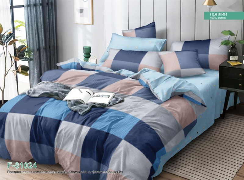 Комплект постельного белья плотностью 115 гр/м2 из поплина. Рюши и ушки (французский кант) отсутствуют.