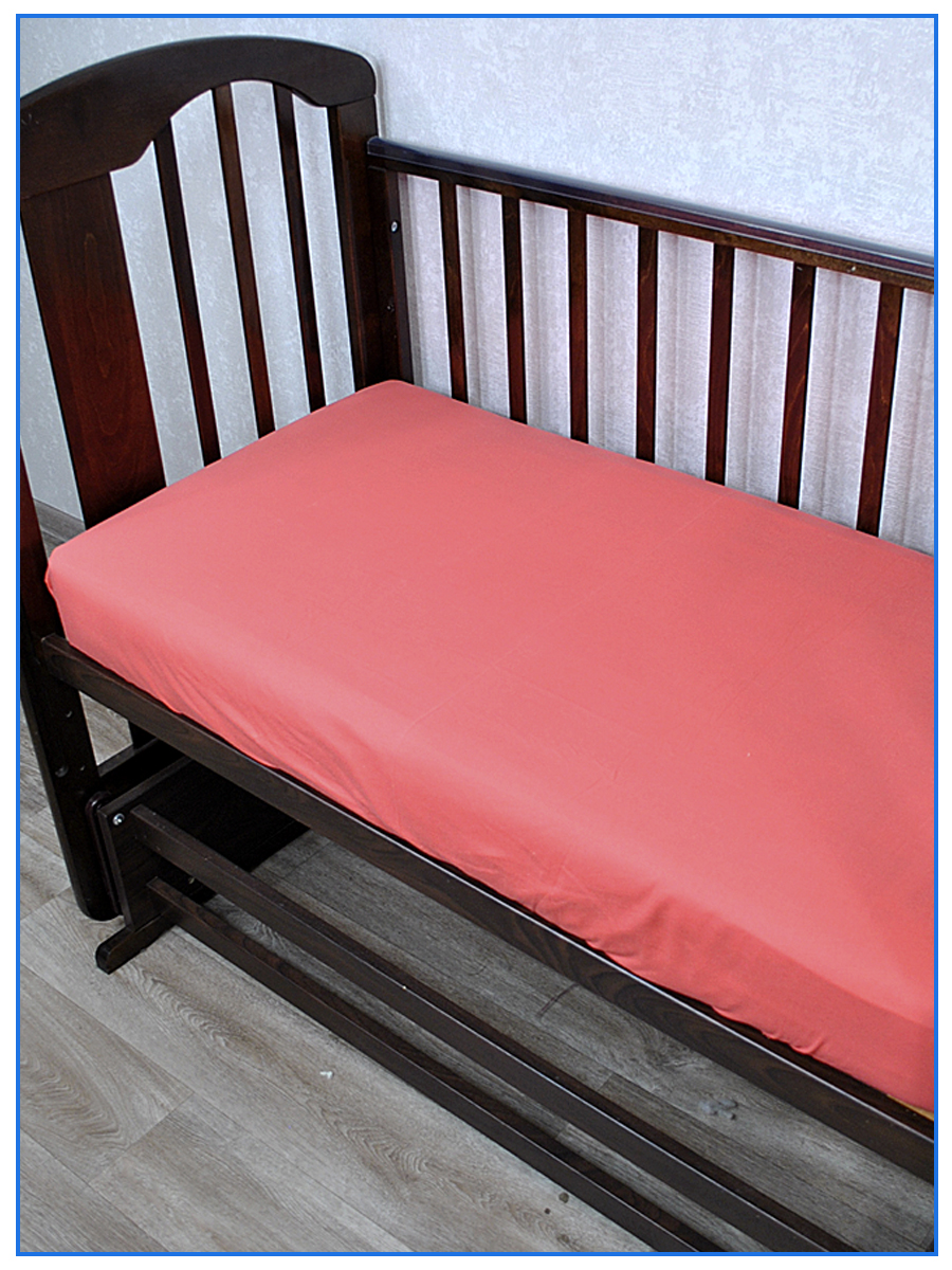 Простыня трикотажная на резинке 60х120 - (м) - коралловый