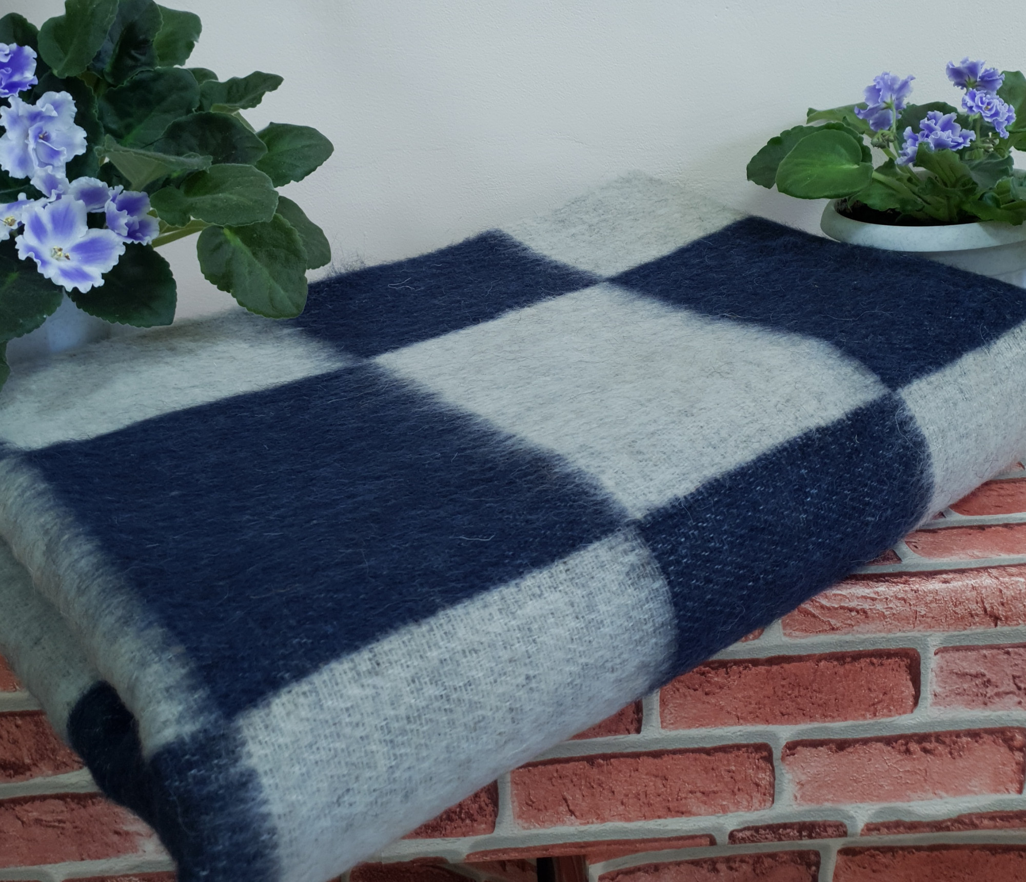 Детское одеяло шерстяное 70% 4001 - 0*1 40 Клетка синий)
