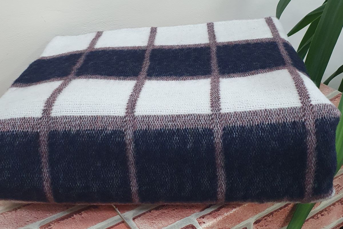 Одеяло шерстяное 50% 140*205 - Бело-сине-коричневая клетка О-1