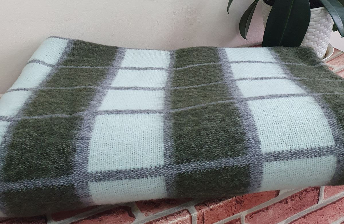 Одеяло шерстяное 50% 140*205 - Серо-бирюзово-зеленая клеткаО-1