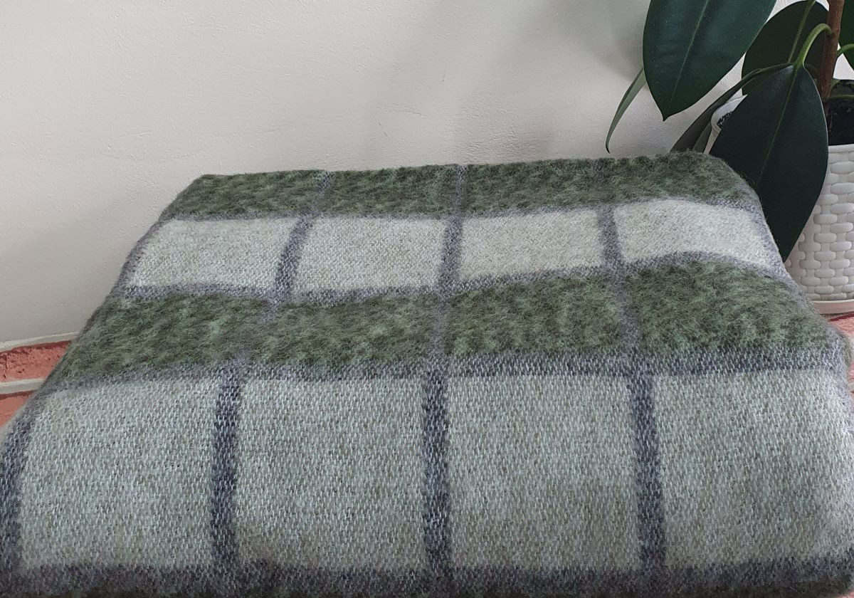 Одеяло шерстяное 50% 140*205 - Серо-оливково-зеленая клетка О-1