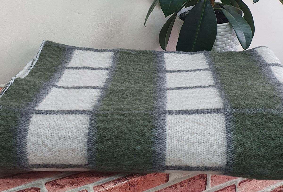 Одеяло шерстяное 50% 140*205 - Серо-зеленая клетка 2О-1
