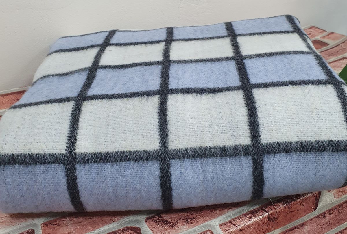 Одеяло шерстяное 50% 140*205 - Бело-сине-темно серая клетка О-2