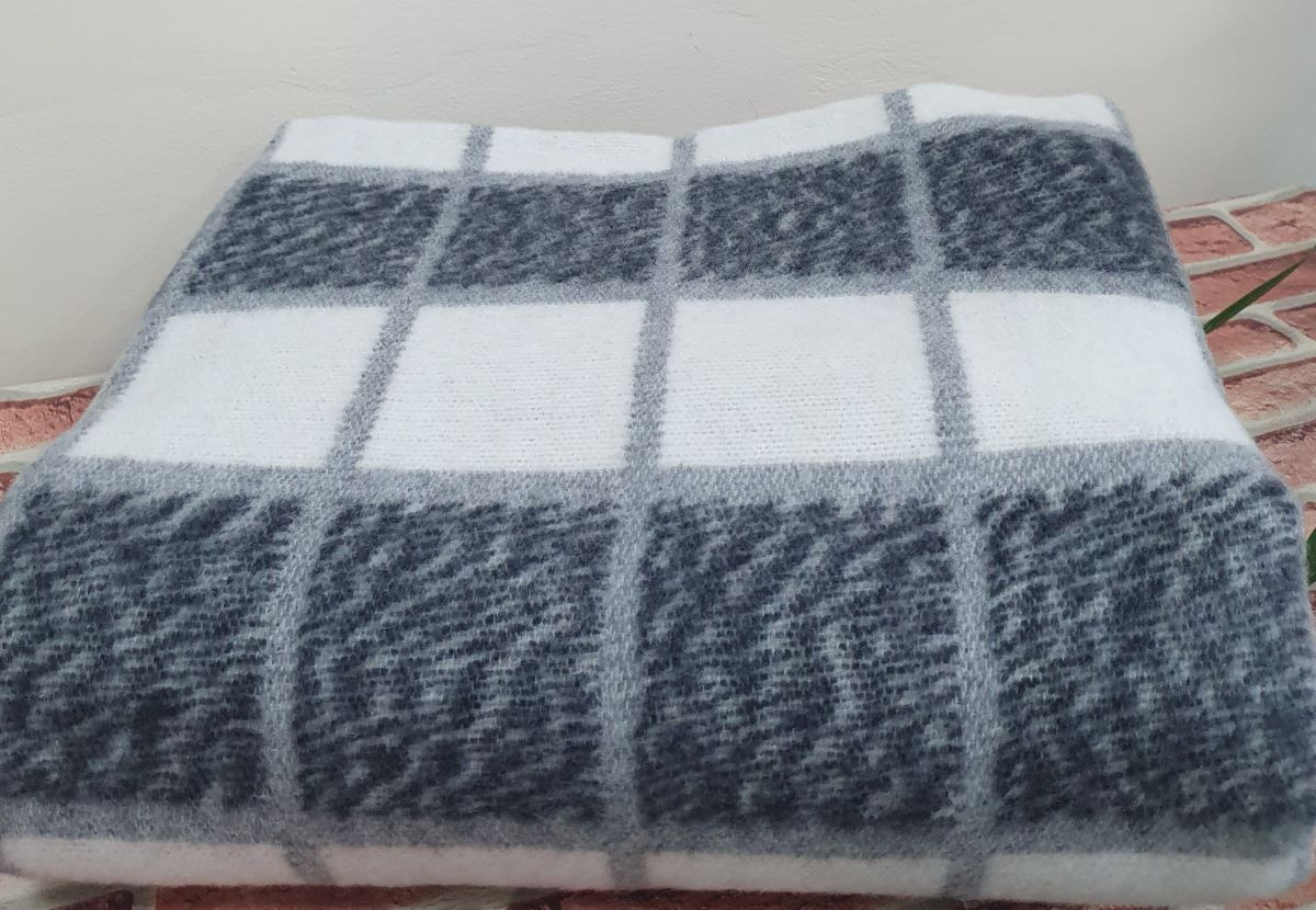 Одеяло шерстяное 50% 140*205 - Серая клетка 4 О-1