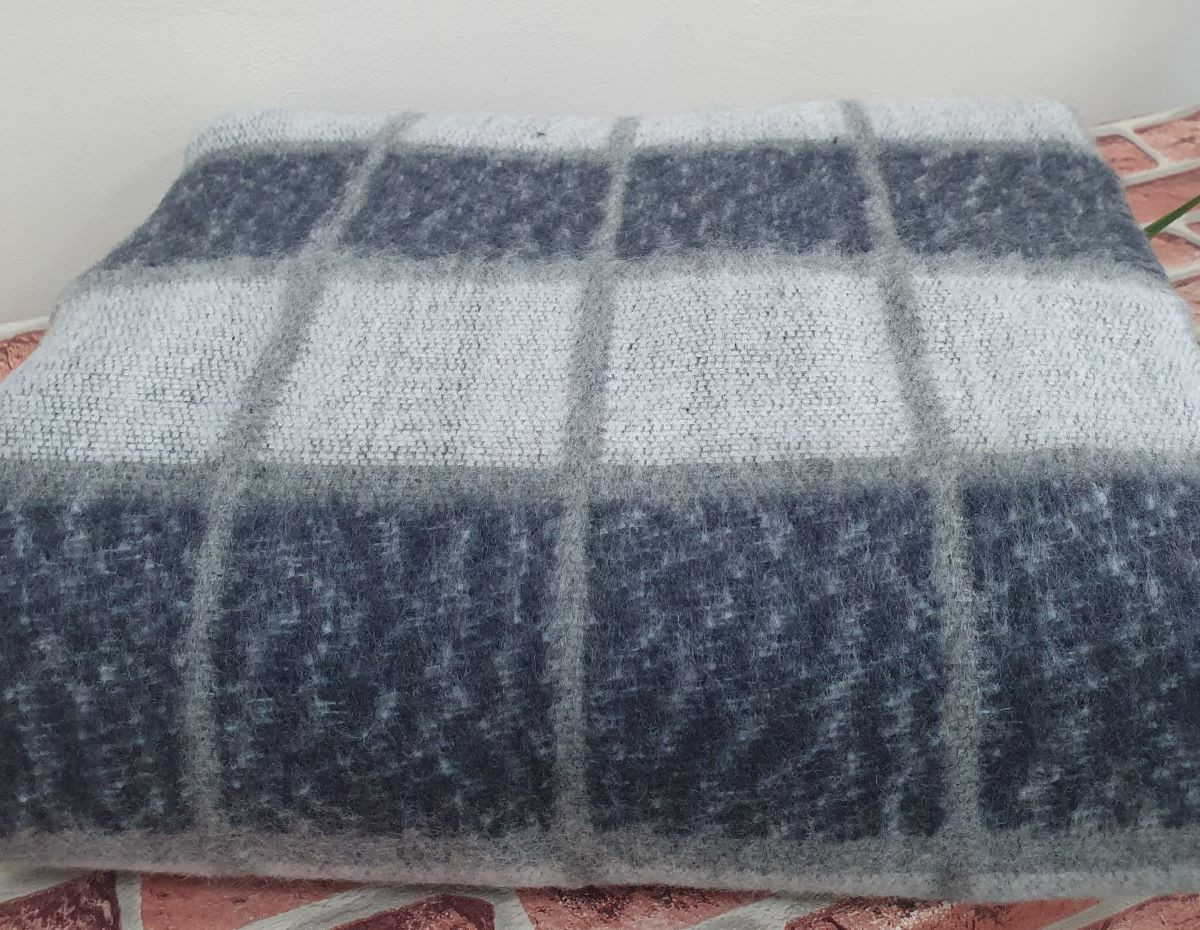 Одеяло шерстяное 50% 140*205 - Серая клетка 3 О-1