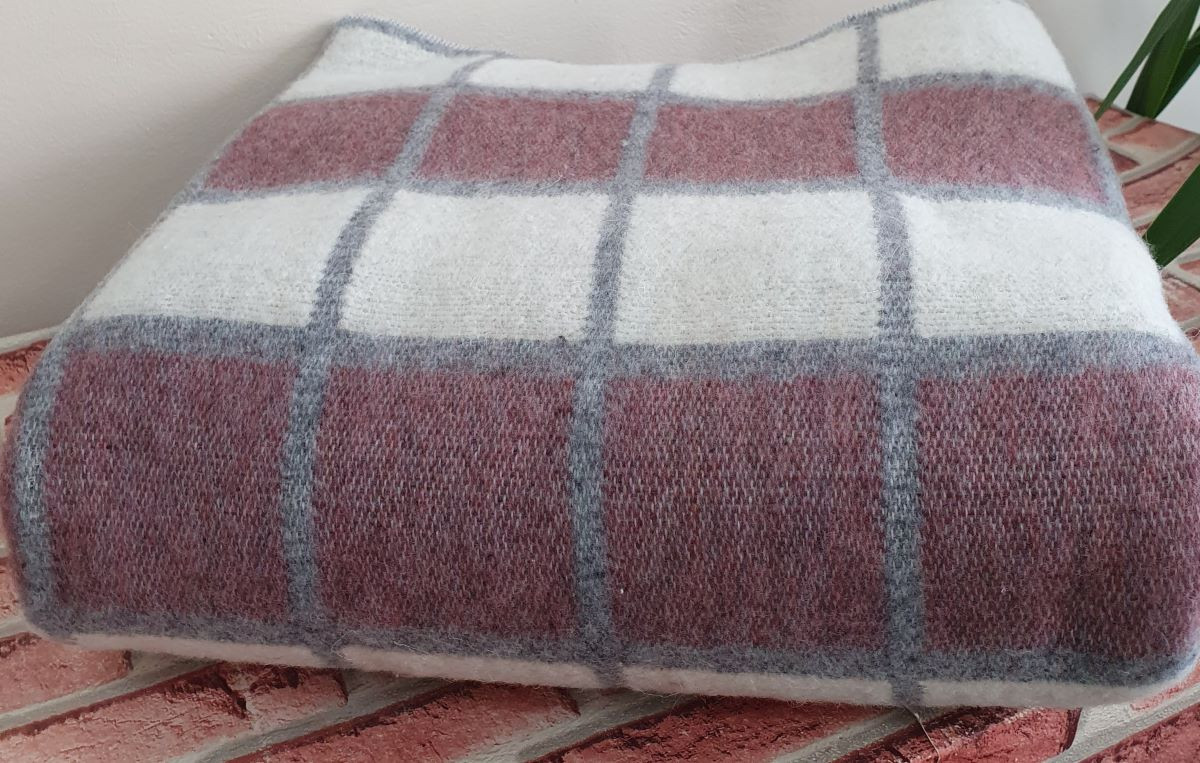 Одеяло шерстяное 50% 140*205 - Бело-серо-бордовая клетка 1 О-1