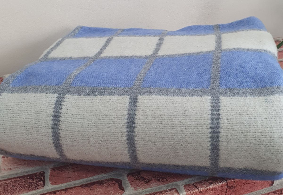 Одеяло шерстяное 50% 140*205 - Бело-серо-синяя клетка 3 О-1