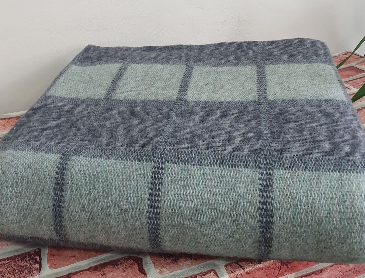 Одеяло шерстяное 50% 140*205 - Серо-оливковая клетка 2 О-1