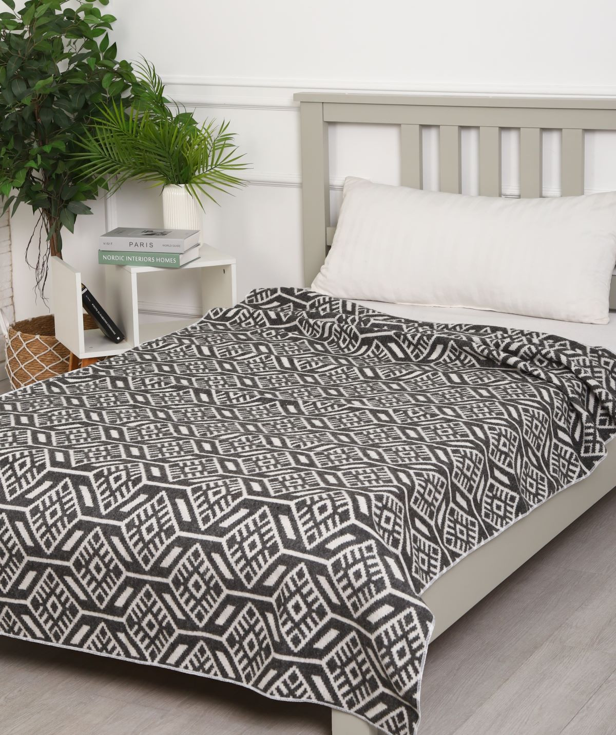 Одеяло шерстяное 70% 140*205 - Жаккард серый Ромб