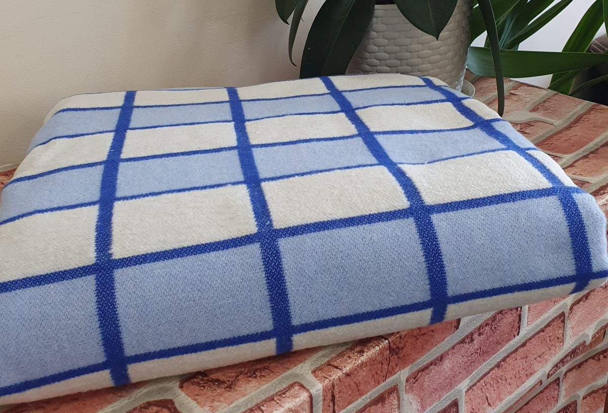 Одеяло байковое 140*205 - 80% хлопка бело-голубая клетка с синим 1