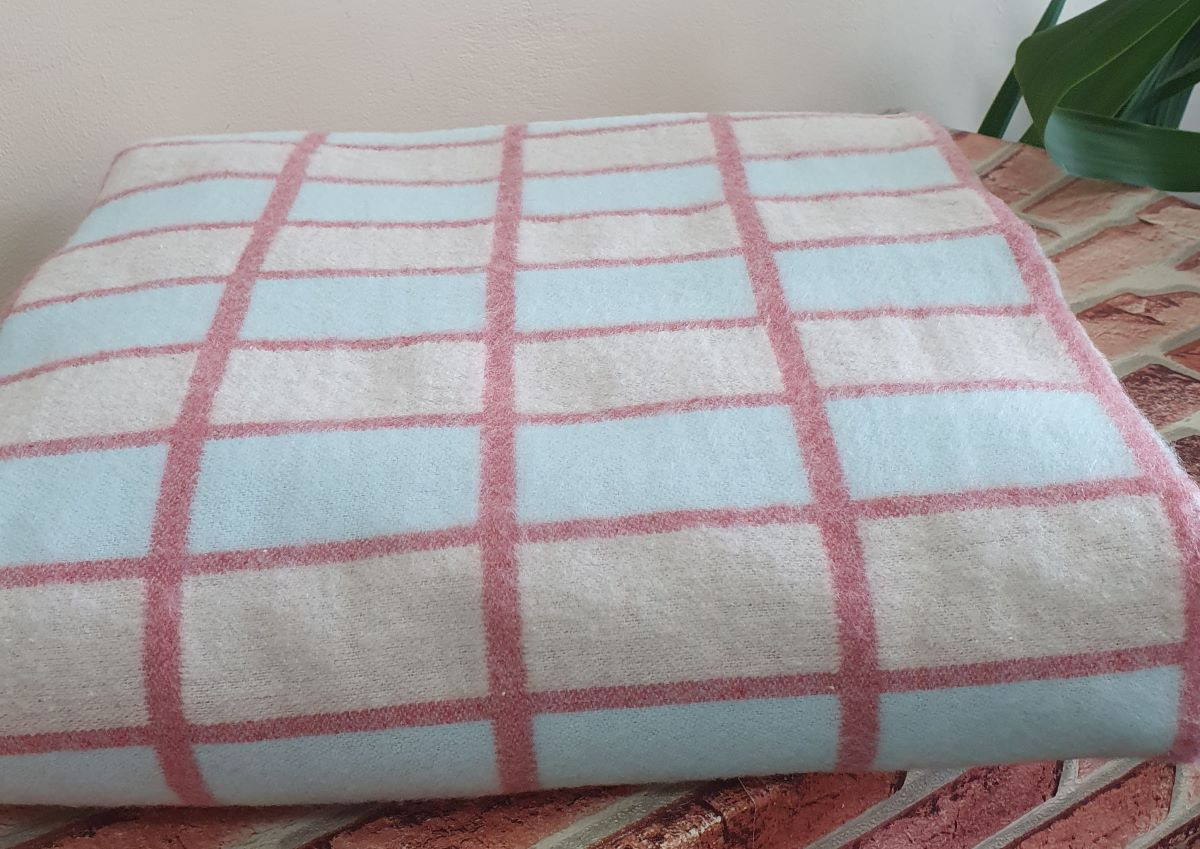 Одеяло байковое 140*205 - 80% хлопка бежево-бордово-голубая клетка