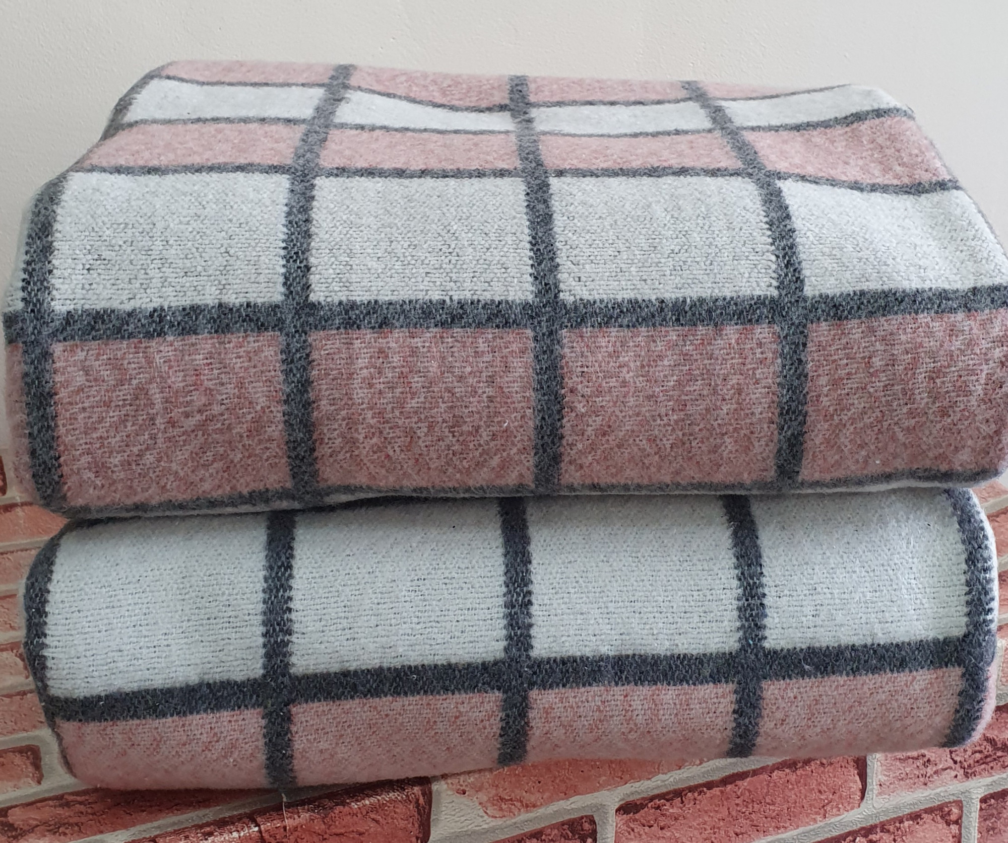 Одеяло шерстяное 50% 140*205 - Бело-серо-розовая клетка мелкая 2 О-2