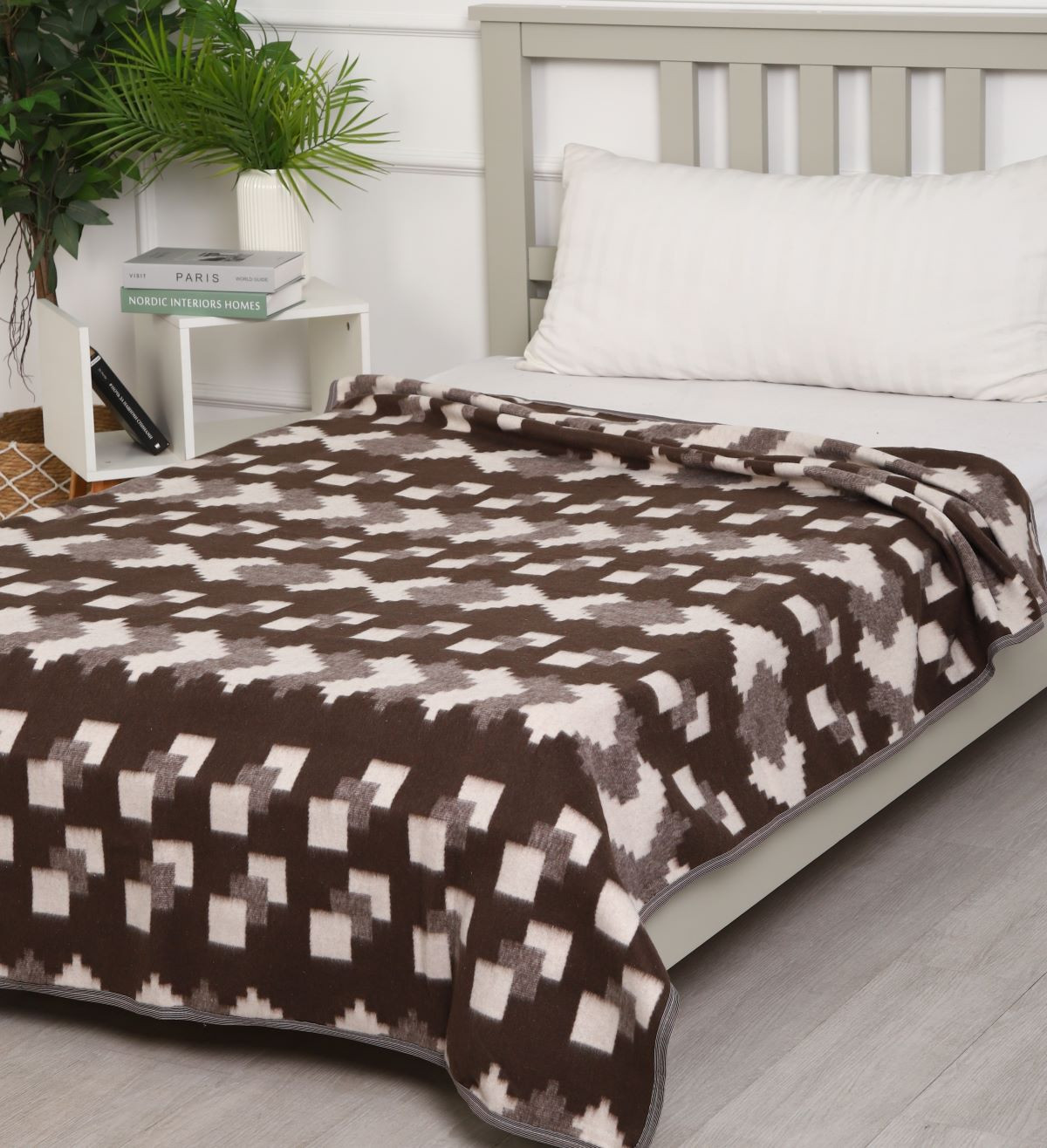 Одеяло байковое 140*205 - Квадраты (коричневый) в канте