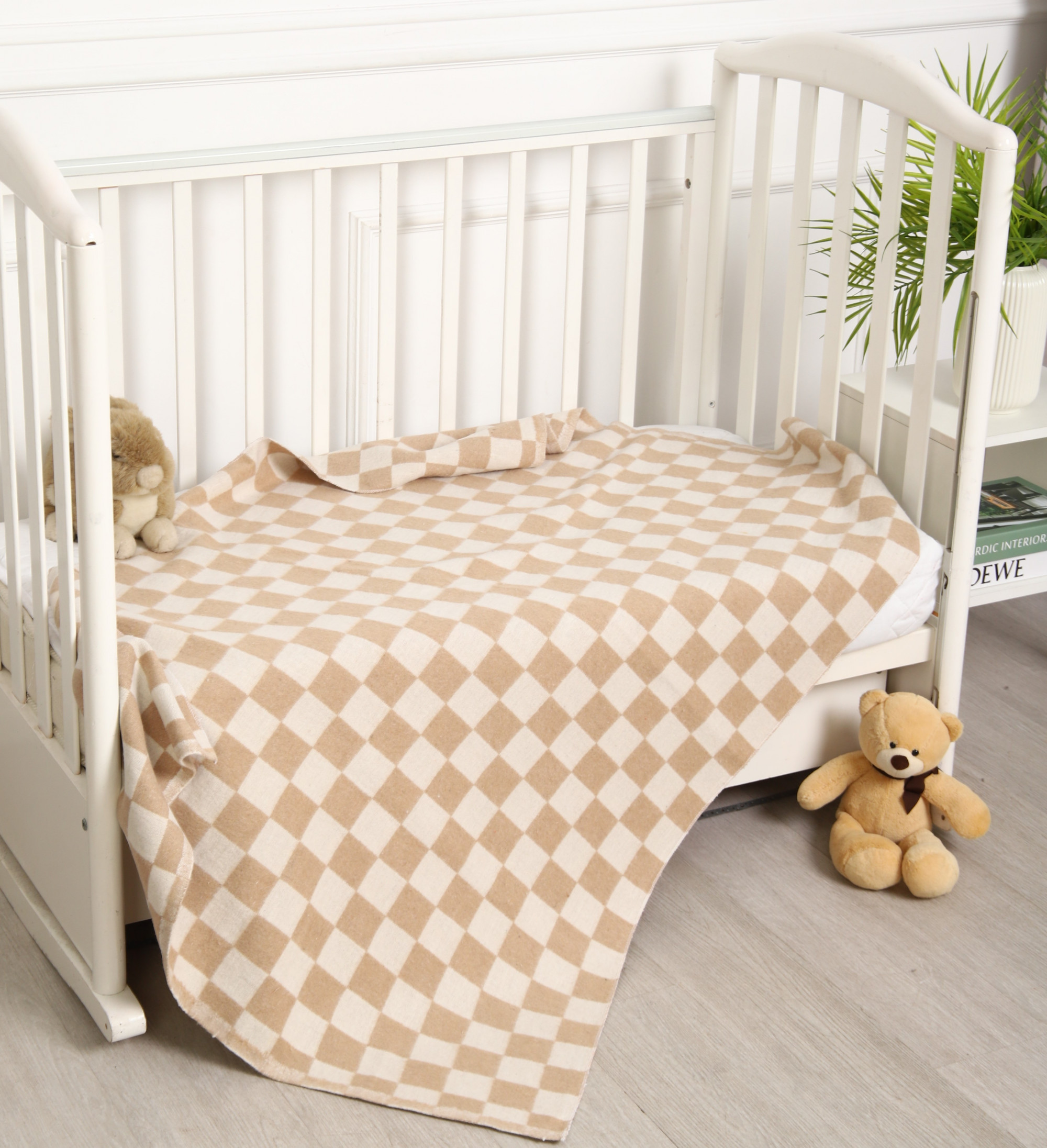 Детское байковое одеяло 100*140 - Бежевая клетка крупная 100% хлопок