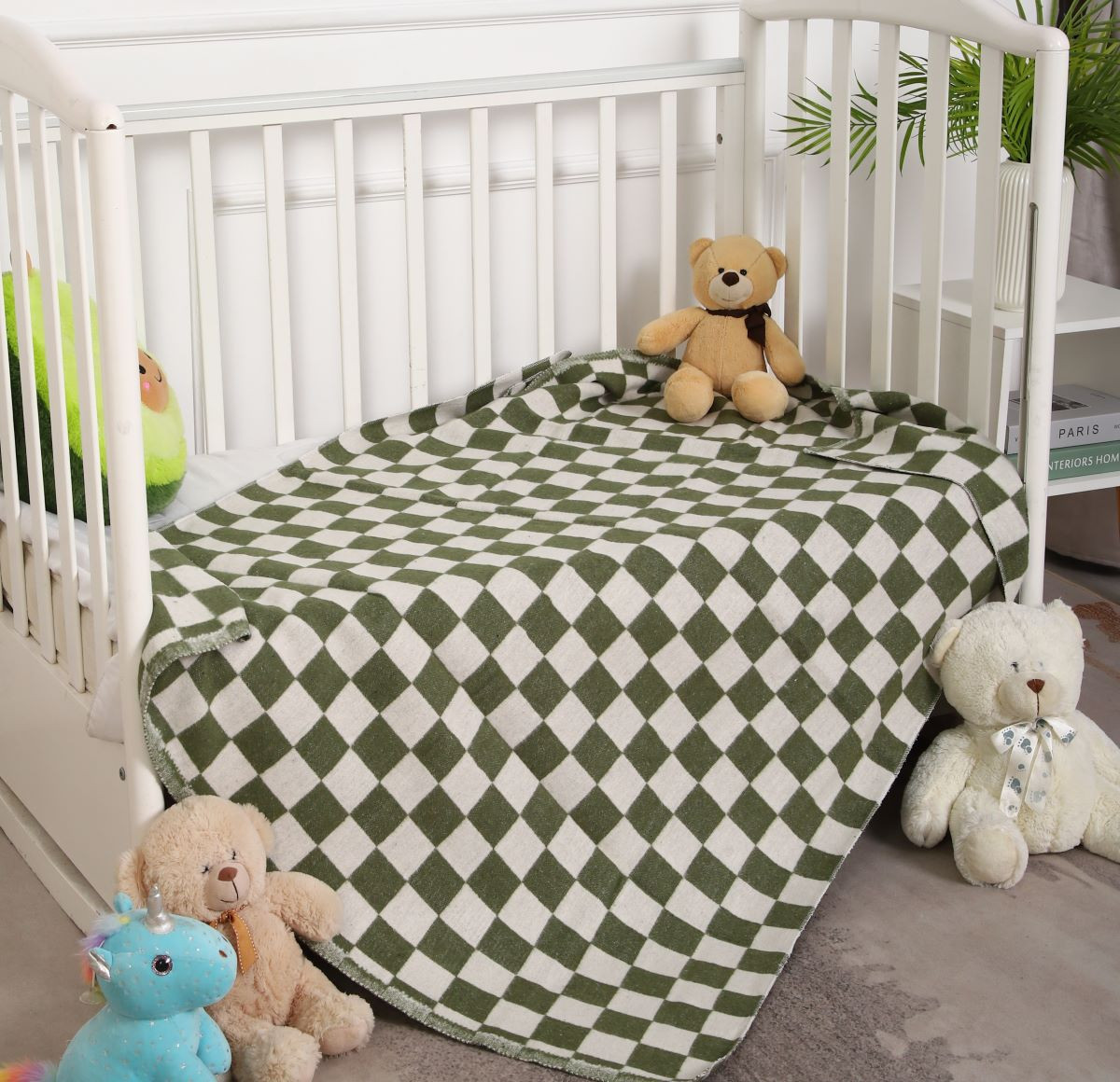 Детское байковое одеяло 100*140 - Хаки крупная клетка 100% хлопок