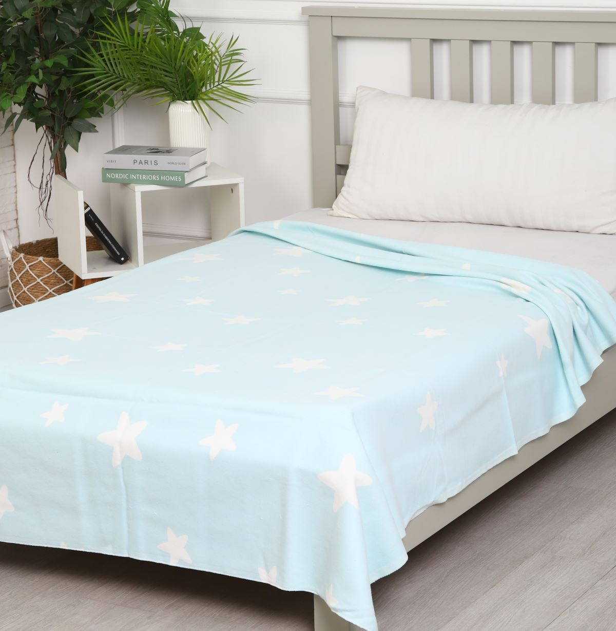 Одеяло байковое 140*205 - С принтом Звезды цвет голубой