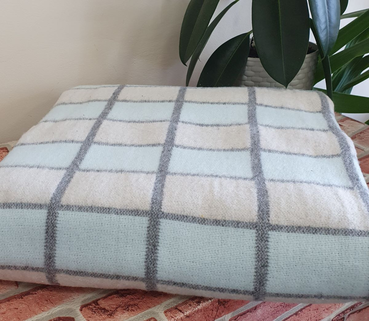Одеяло байковое 140*205 - 80% хлопка бело-серо-голубая клетка 1