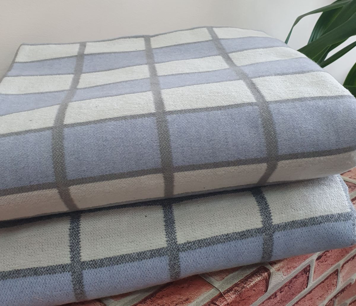 Одеяло байковое 140*205 - 80% хлопка бело-темно серая клетка с синим 1